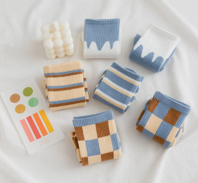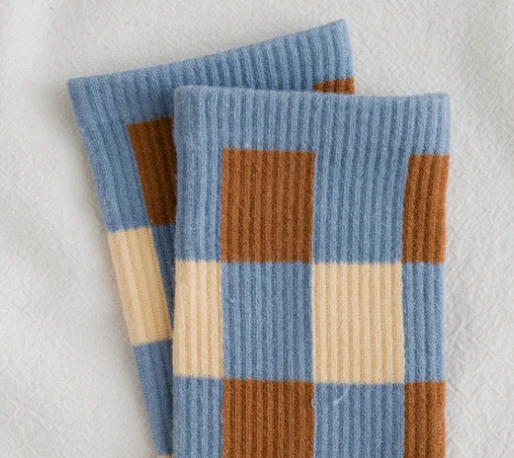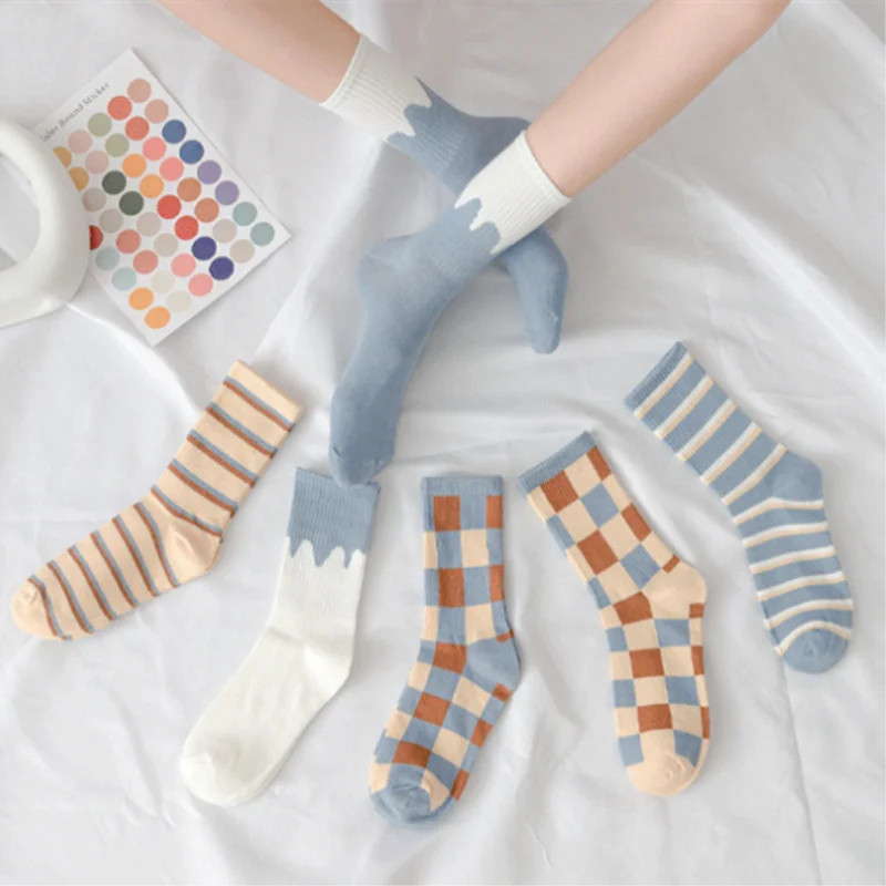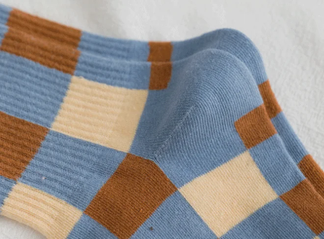 Носки женские хлопковые в клетку, удобные дышащие теплые, в синем стиле, 1 пара, весна-осень-зима