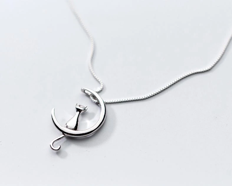 Женское длинное колье из серебра 925 пробы, с подвеской в виде кошки
