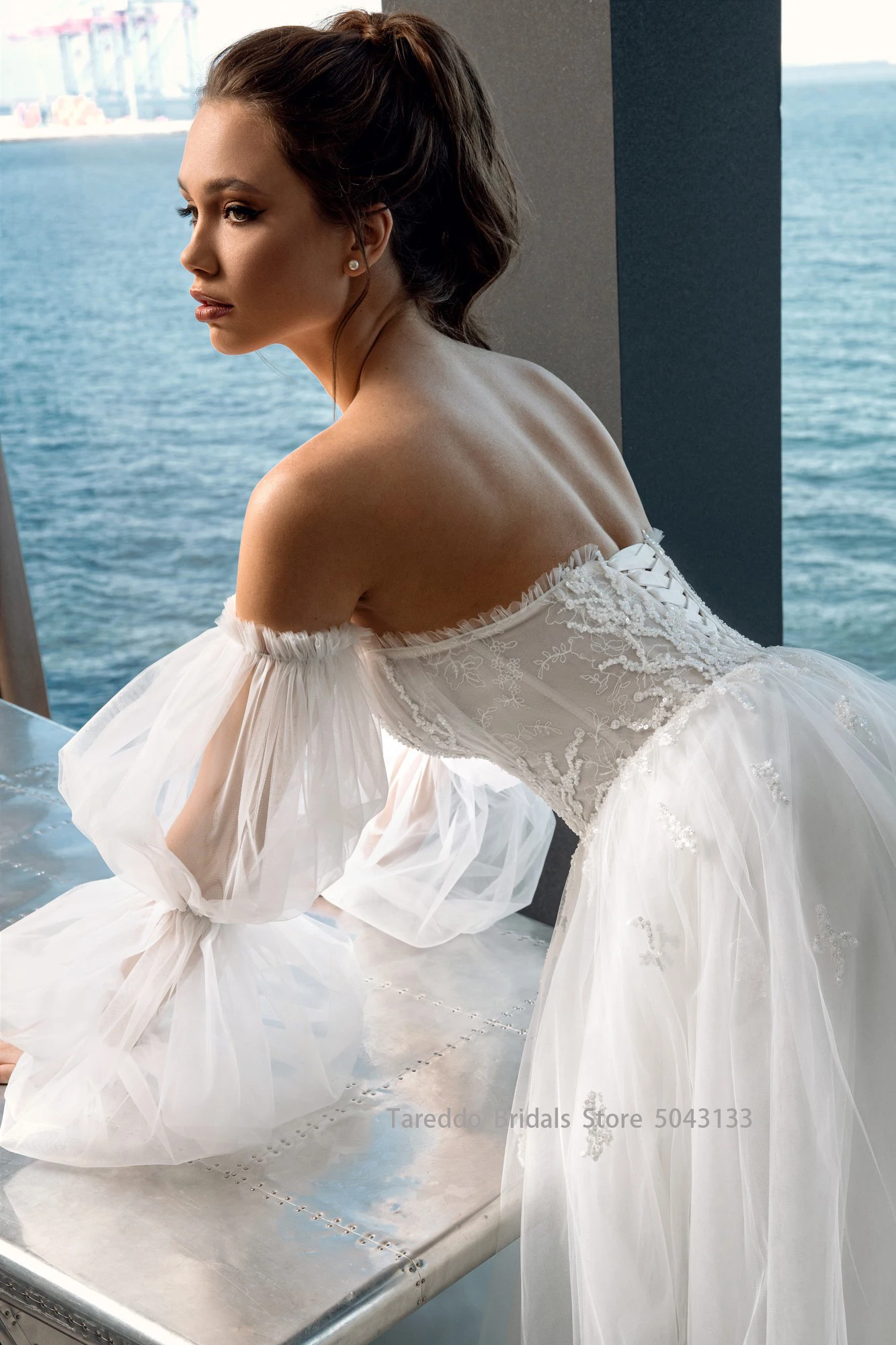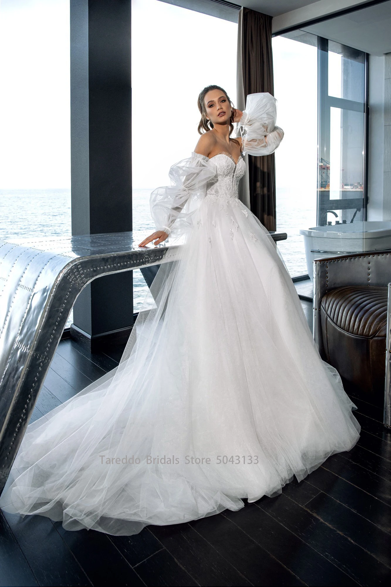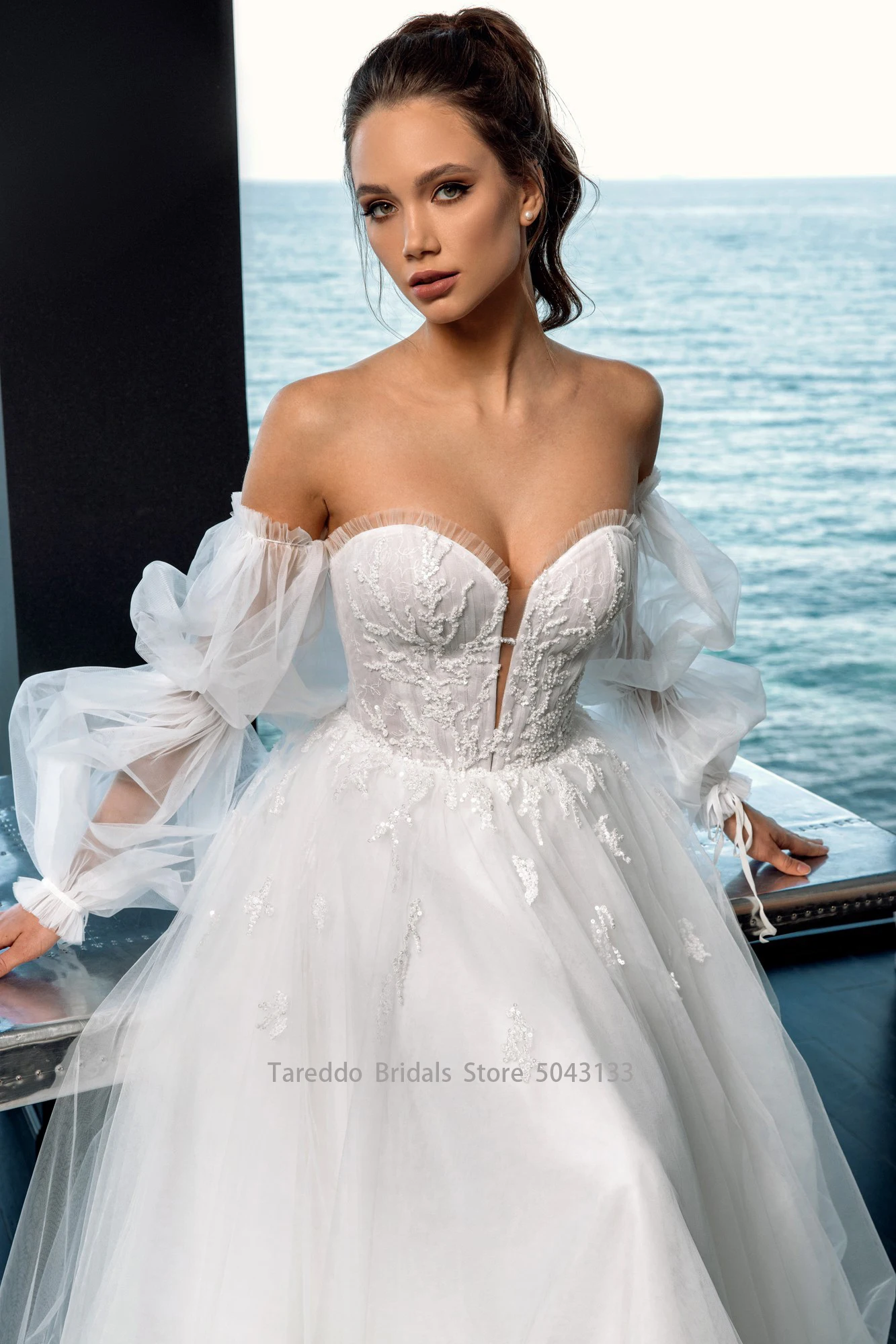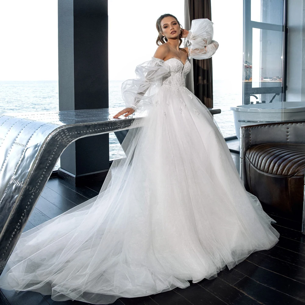 Съемные Свадебные платья из белого тюля с длинными рукавами 2022 богемное милое кружевное Плиссированное официальное платье невесты с аппликацией