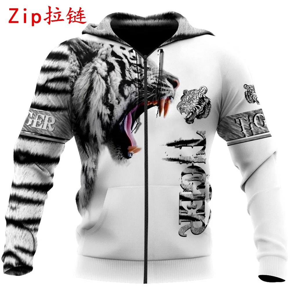 Новинка, Модные осенние толстовки с капюшоном, белый тигр, мужская толстовка с 3D принтом, повседневная куртка унисекс на молнии DY72