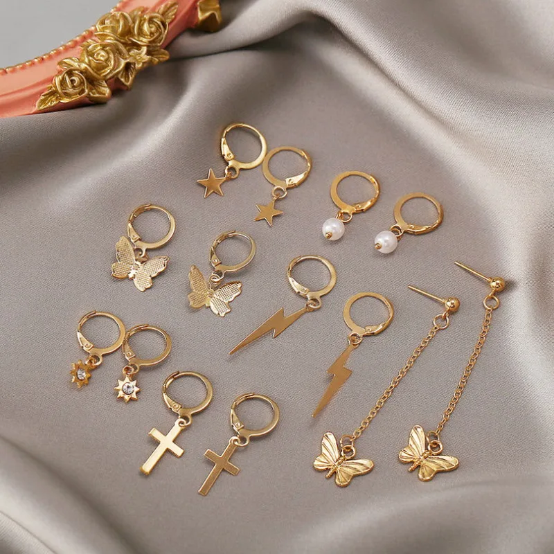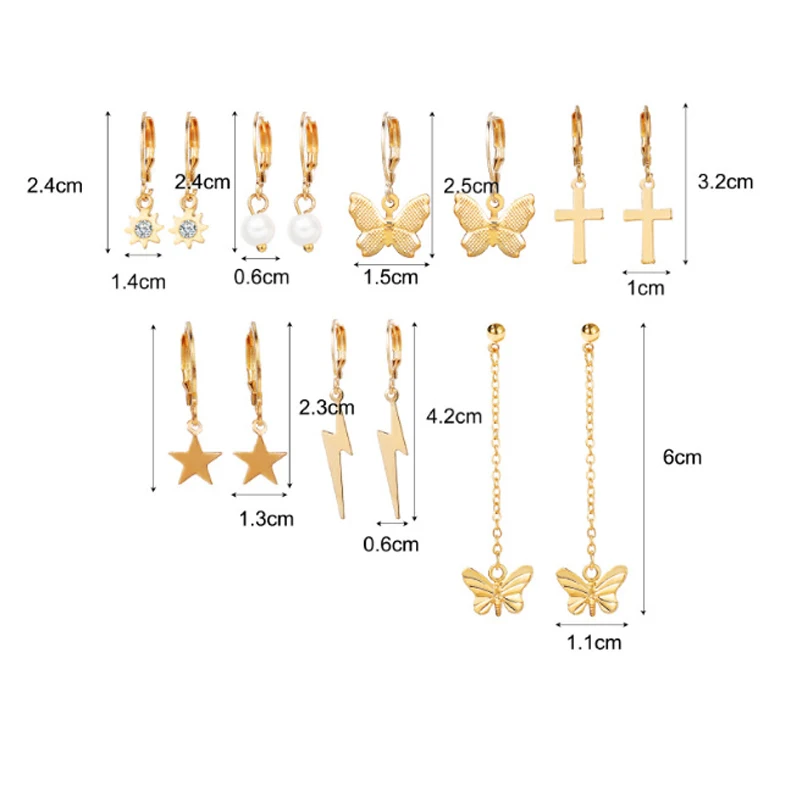Набор серег-гвоздиков в форме бабочки, с крестом, звезды, Луны, динозавра, с кристаллами, в разных стилях, простая Комплект сережек для женщин для девочек, ювелирные изделия
