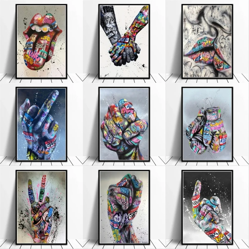 Современные граффити абстрактные руки и губы холст постер поп-улица настенные картины для домашнего декора