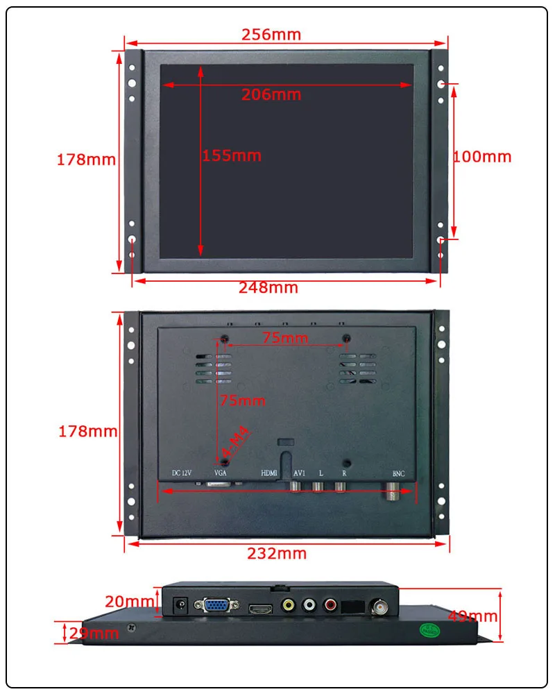 Небольшой резистивный сенсорный экран 10 дюймов 4:3, 800x600, открытый корпус, монитор компьютера с VGA HDMI AV BNC