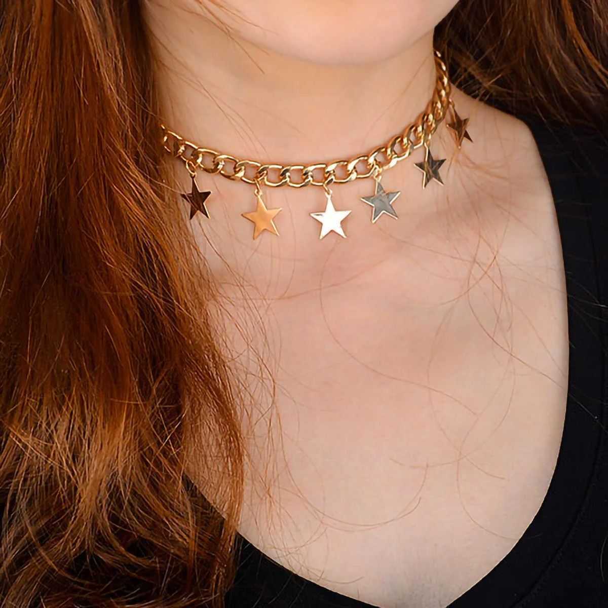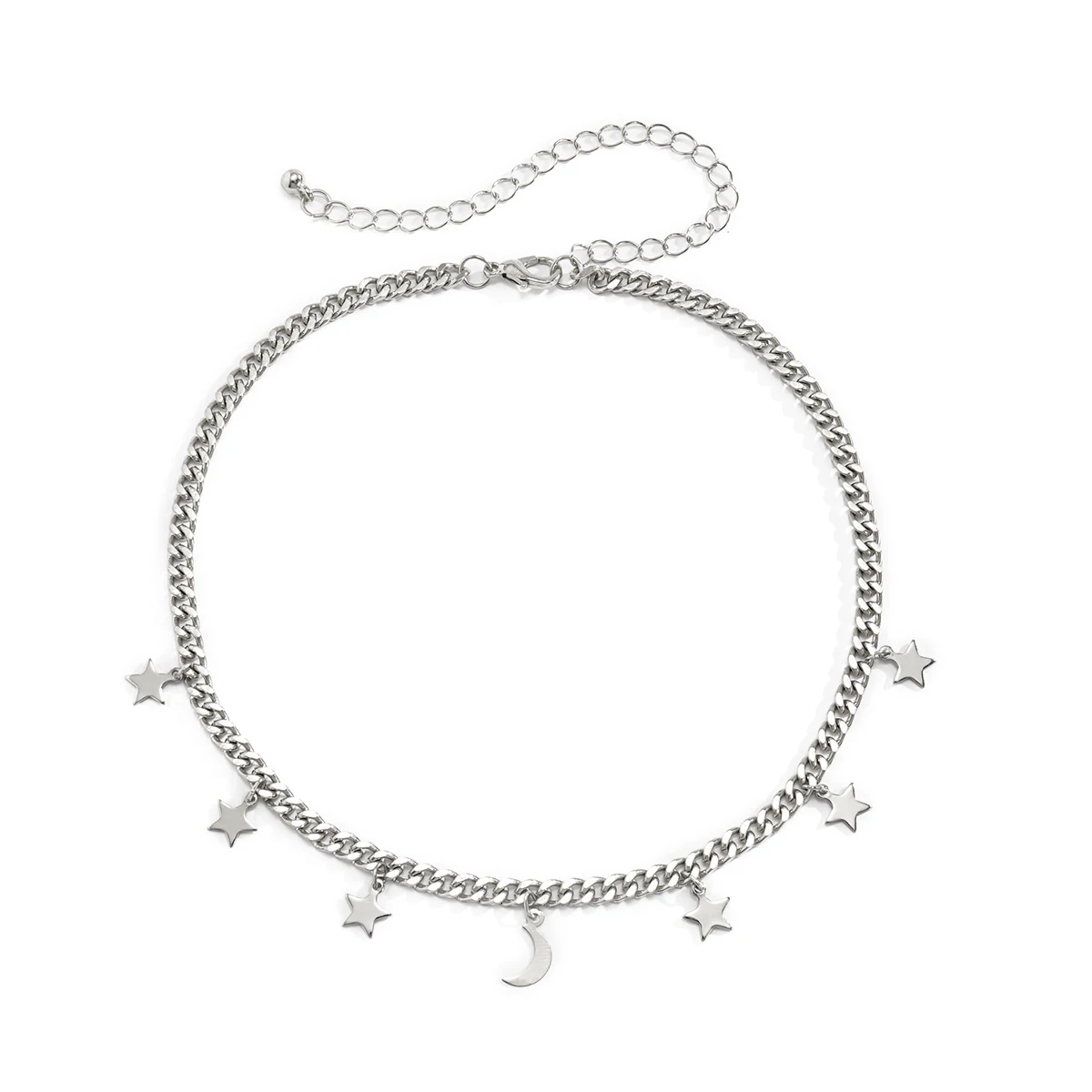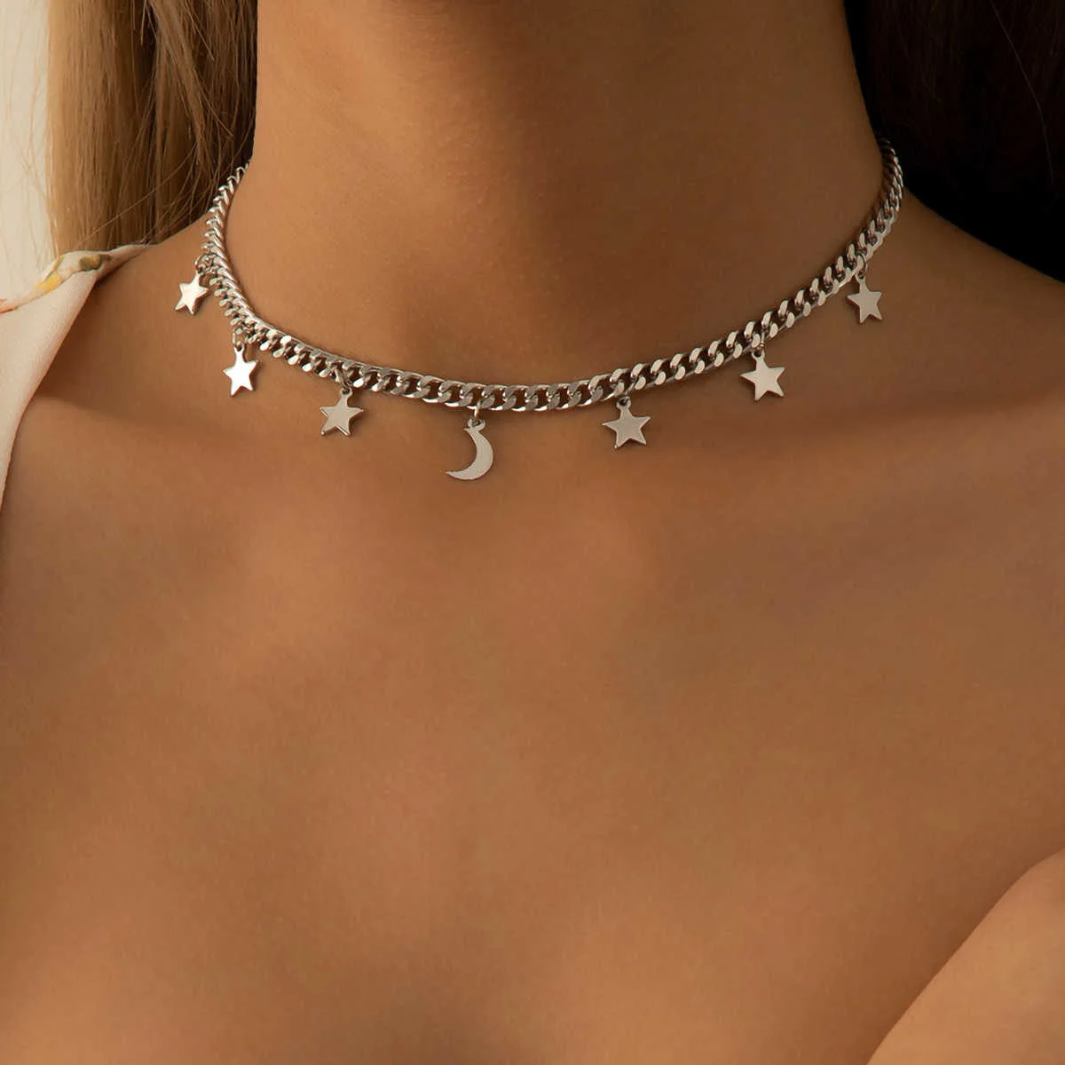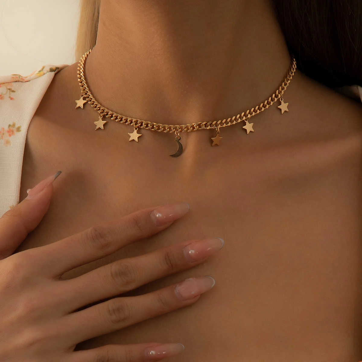 Ожерелье женское короткое с подвеской в виде звезды и Луны