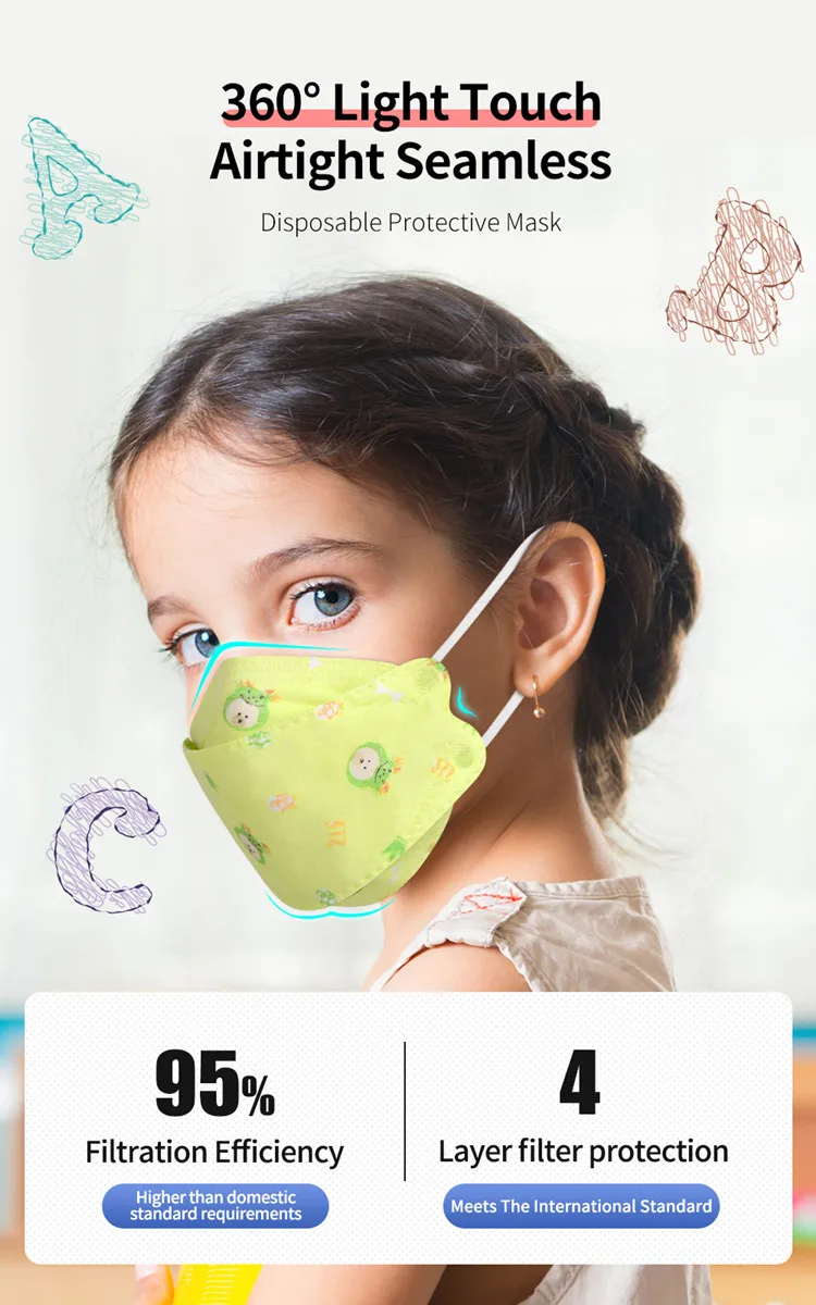 Маска детская многоразовая ffp2 kn95, 4 слоя, ffpp2
