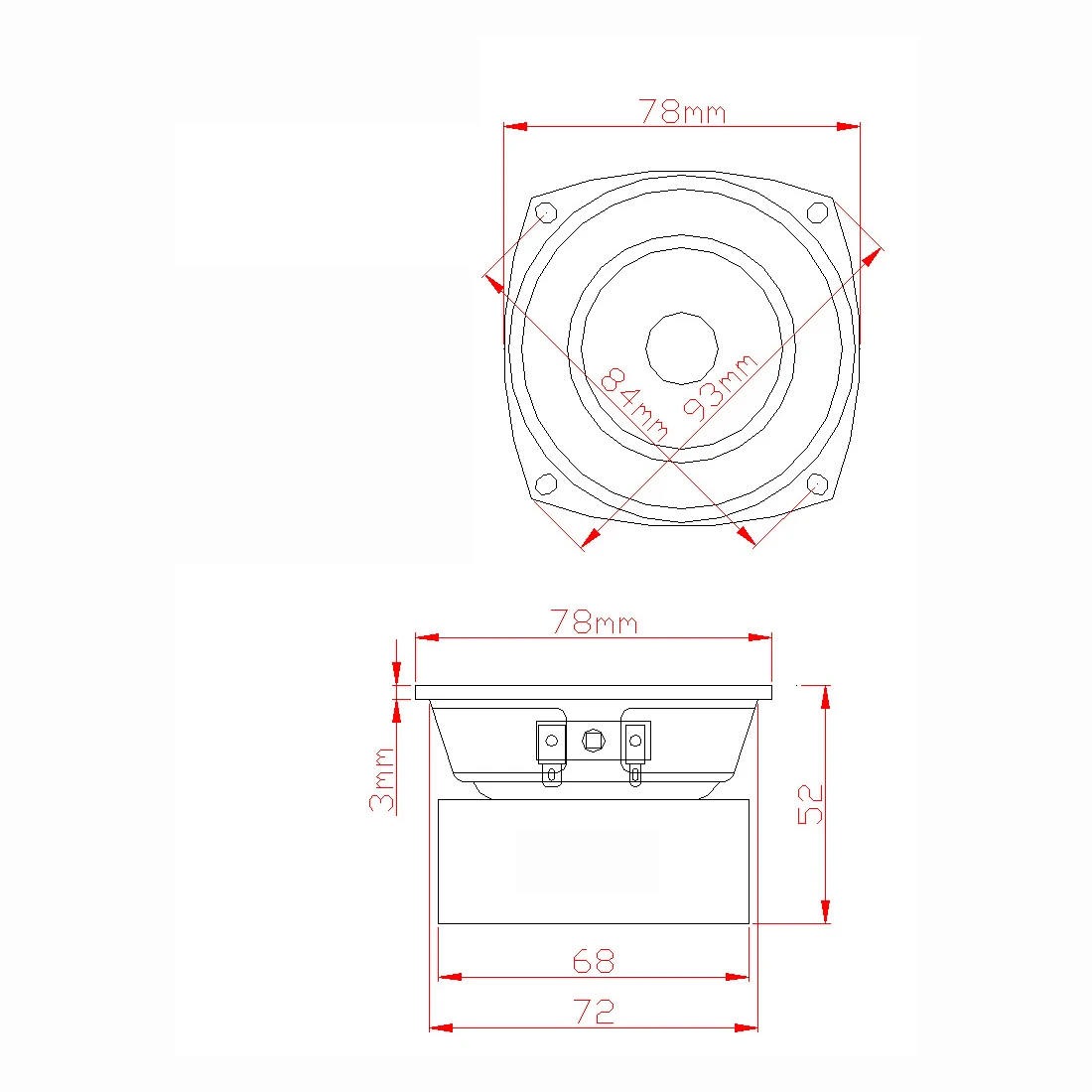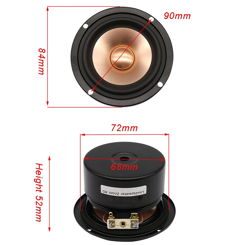 Номинальная мощность: 15 ВтДиапазон мощности: 10-20 ВтКрасный Сопротивление: 4 Ом/8 ОмЧувствительность: 88дб ± 3 дБЧастота: 88 Гц + 20 кГцДиаметр звуковой катушки: 20Эквивалентный объем: 1,37 лQts: 0,61Fo:98 ГцРазмер круглого типа: Φ84мм * h52ммРазмер квадратного типа: 78 мм * h52ммБолее подробную информацию о размерах, пожалуйста, проверьте картинку