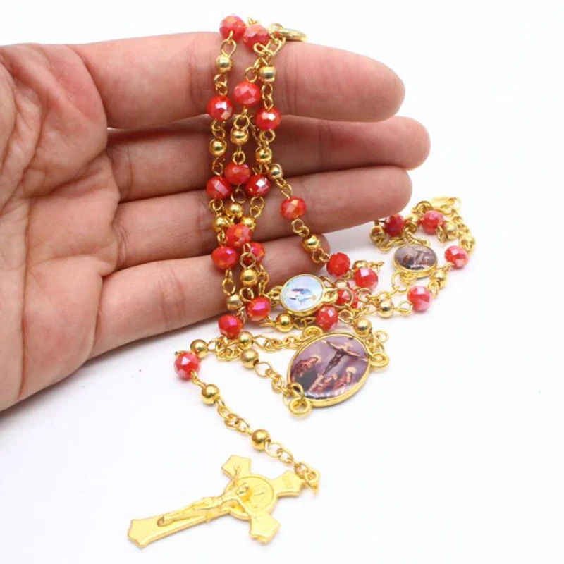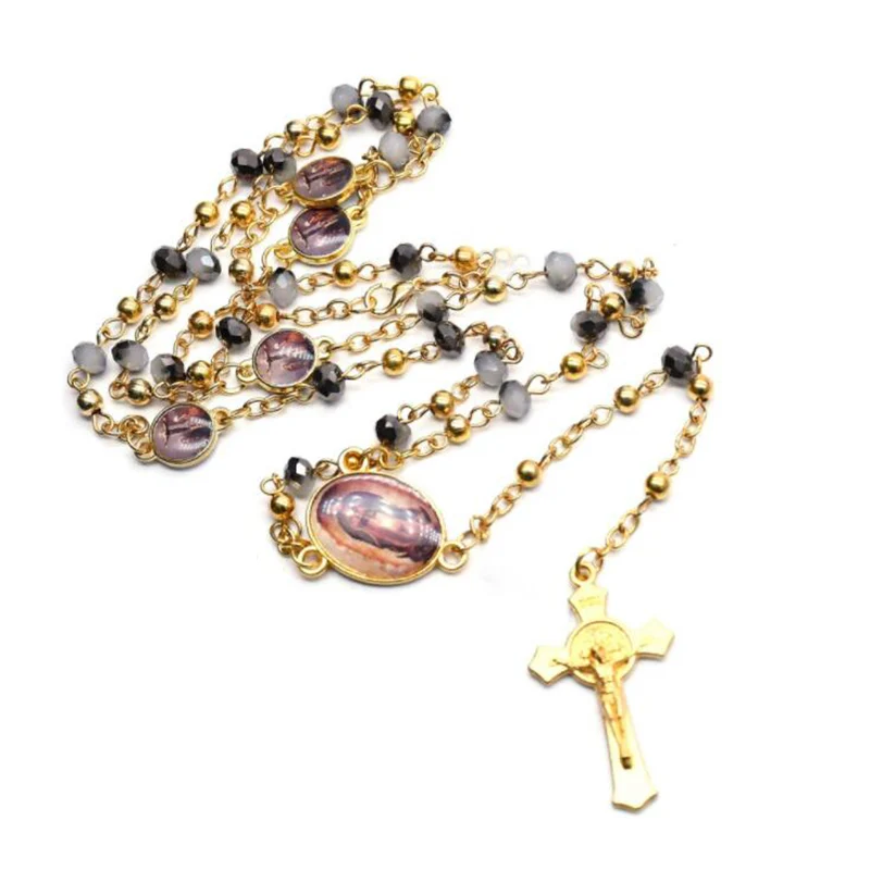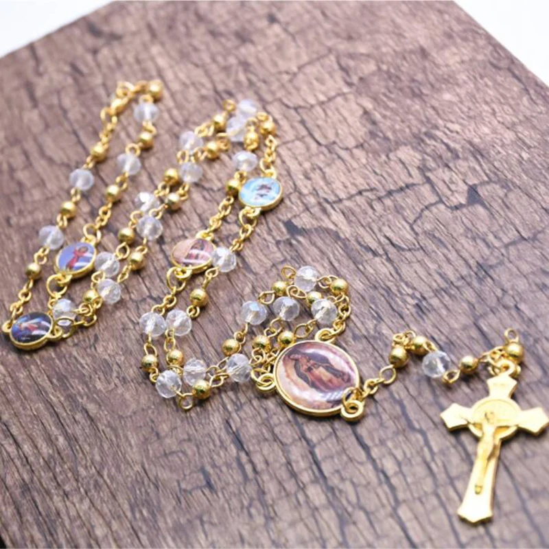 Металлический Хрустальный четки из бусин, ожерелье Иисус крест девственная Мария кулон ожерелье Богоматери Грейс Гваделупа религиозная молитва ювелирных изделий