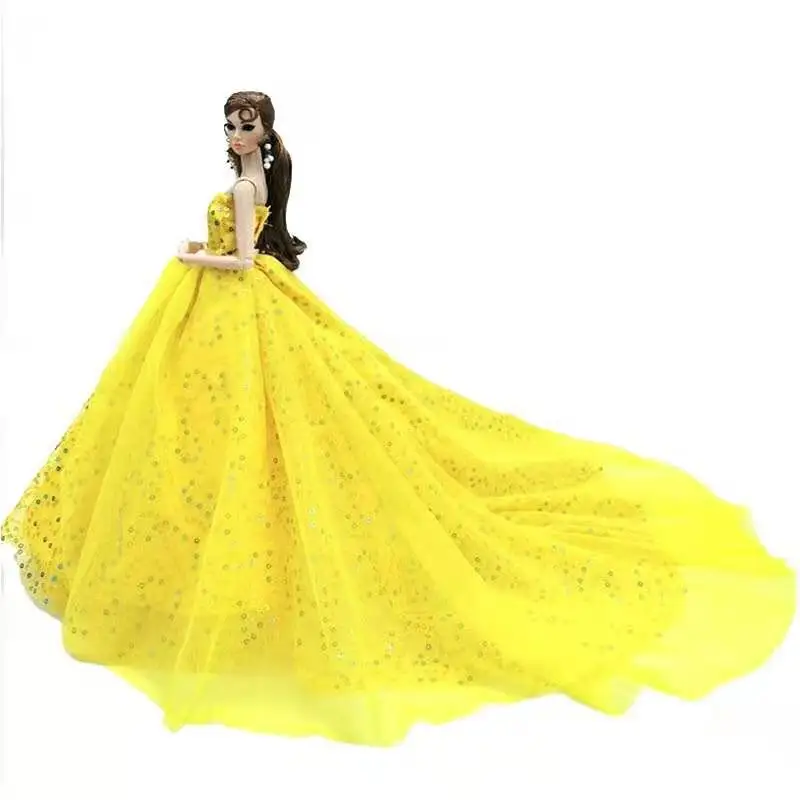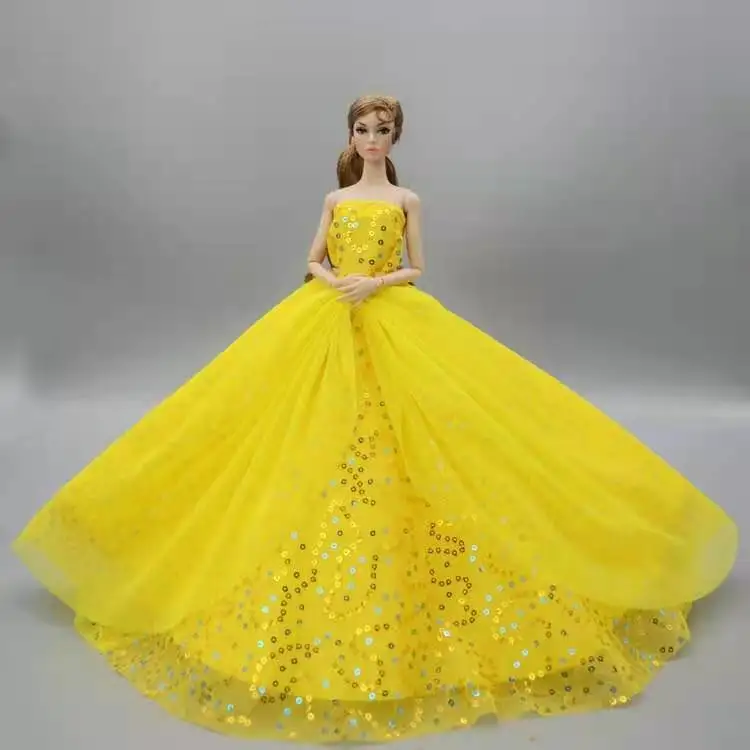 Модное желтое платье на свадьбу, платье с пайетками, платья для Барби Одежда 16 BJD театр аксессуары; Вечернее платье принцессы; Вечерние платье игрушки