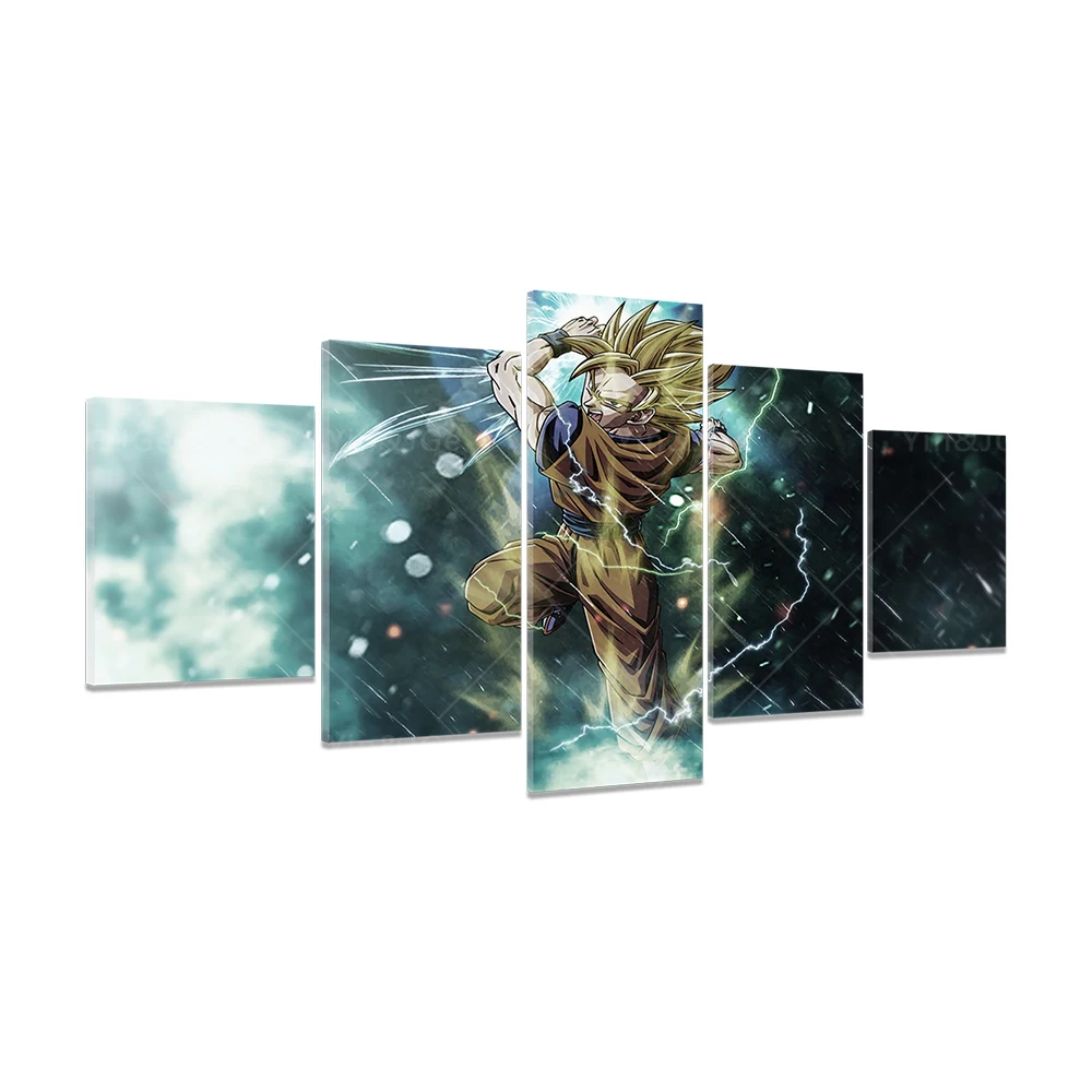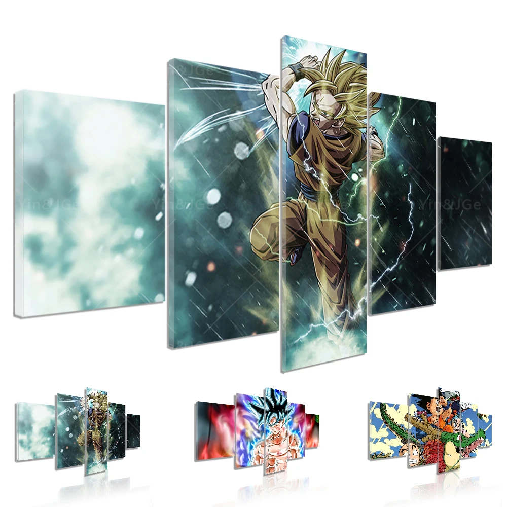 Холст HD с принтами Аниме фигурки из игры Dragon Ball DBZ (Wall Art 5 шт. Плакаты картина домашний декор Гоку фотографии Гостиная модульную произведения искусства