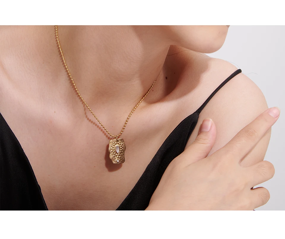 Yhpup водонепроницаемые ювелирные изделия из нержавеющей стали, винтажное креативное ожерелье с кулоном неправильной формы, женское Брендовое металлическое золотое ожерелье 2021 18 K