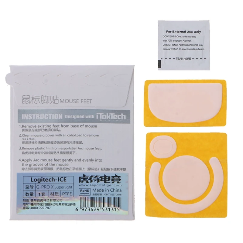 Этот продукт является заменяемой ногой мыши. После удаления оригинальной наклейки для ног мыши очистите нижнюю часть корпуса спиртовым хлопком, который прилагается в посылка, а затем вставьте Новые ножки мыши.