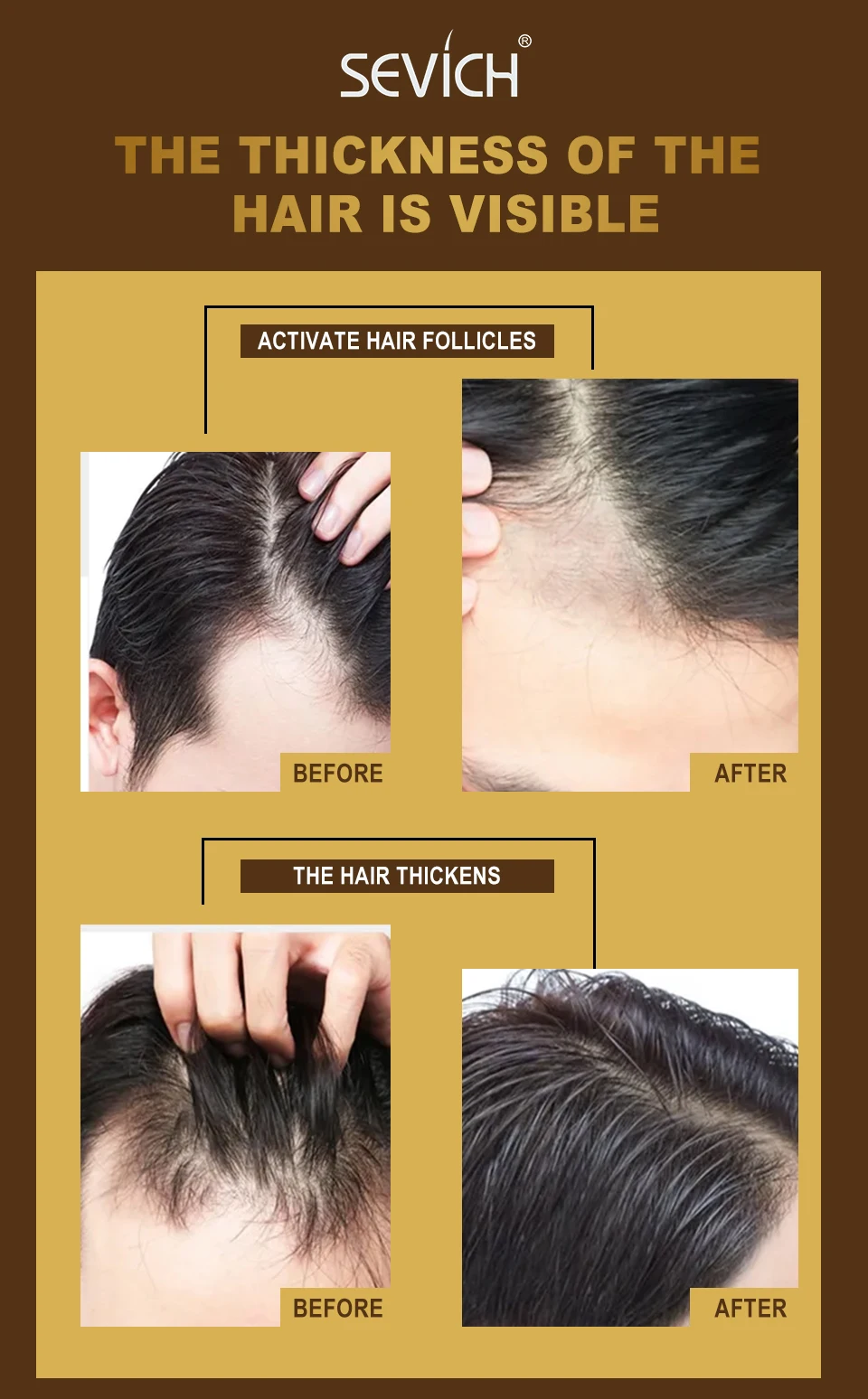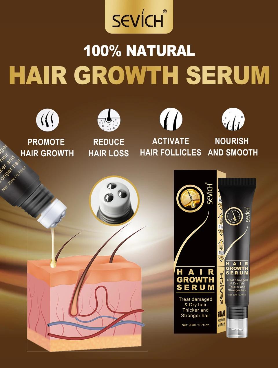 Бренд: SevichТип товара: продукты для роста волосНаименование товара: натуральная эссенция для роста волосВес нетто: 20 млПодходит для: женщин и мужчин