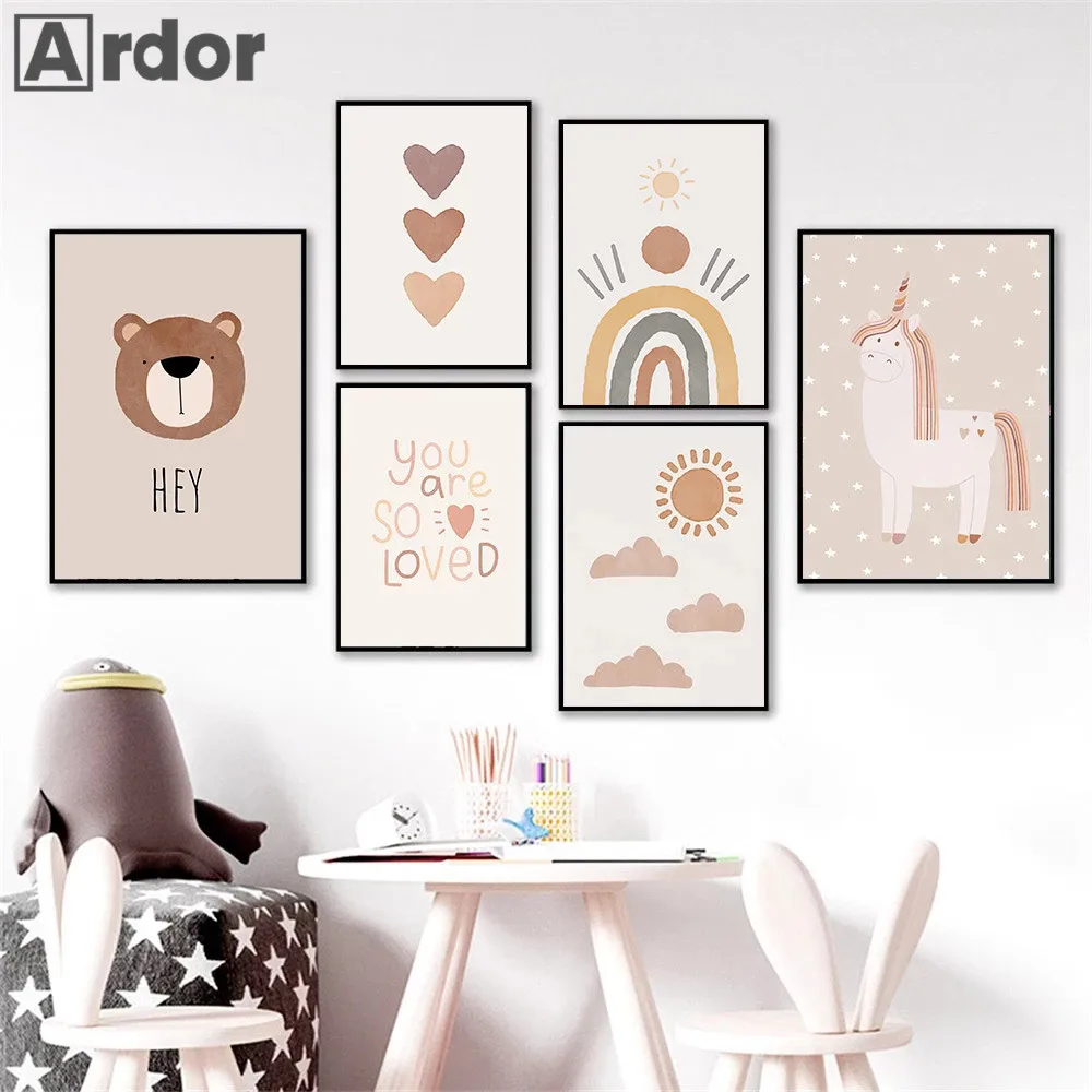 Детский настенный плакат с радужным рисунком, Картина на холсте с с...