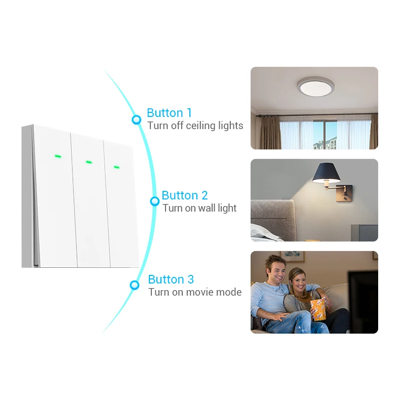 Не только для освещения! Кнопки можно настроить в режимах для запуска других умных домашних устройств или сцены, что делает ваш выключатель света универсальным контроллером умного дома.