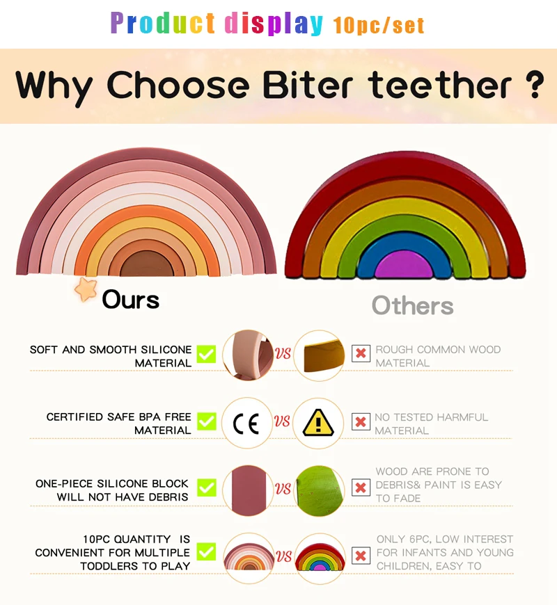 Название продукта: 1 Набор детских радужных силиконовых игрушек для укладкиРазмер: как показано на фотографииЦвет: как показано на фотографииВес: 234,5 гМатериал: кремнеземХарактеристика: креативность и красочностьПринимаем: Прямая поставка
