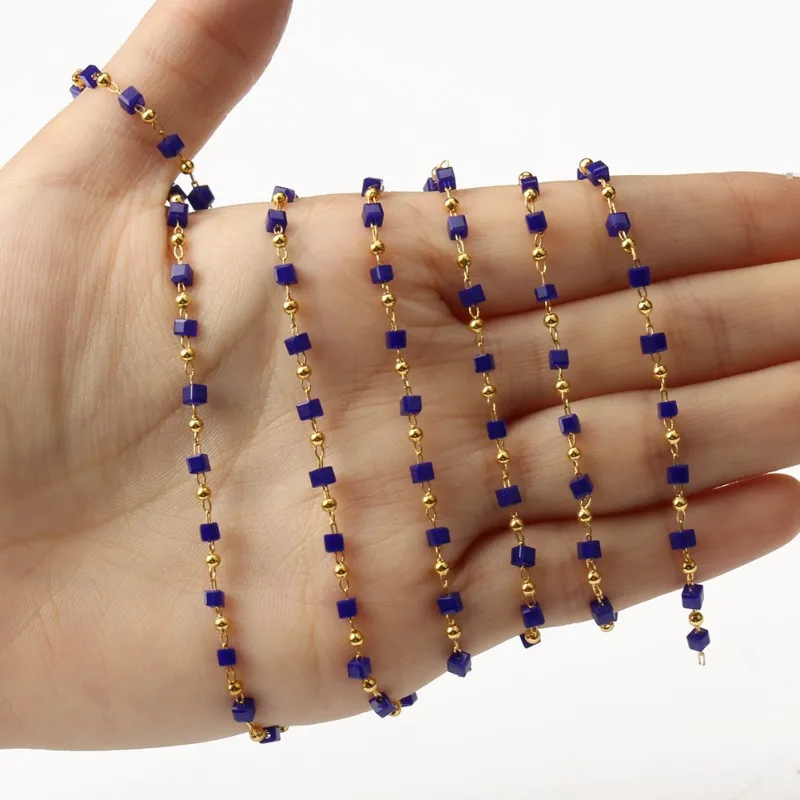1 метр многоцветная квадратная Хрустальная Цепочка Из Бисера из нержавеющей стали, цепочка из бисера для изготовления ювелирных изделий, сделай сам, модные ожерелья-чокер