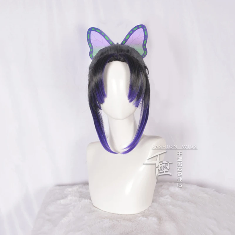 Кохау Shinobu парик с повязка с бантом Косплэй костюм демона убийца Kimetsu без Yaiba синтетический термостойкий парик волос Для женщин парики