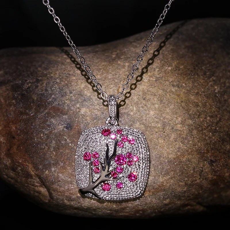 Ожерелье и кольцо CIZEVA с блестящим красным и зеленым Цирконом