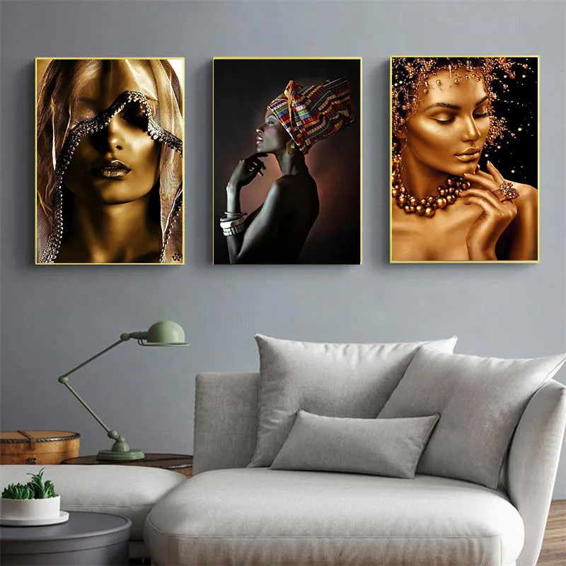 Картины на холсте с изображением женщины черного и золотого цвета, скандинавские плакаты и скандинавские принты, настенные картины для украшения дома