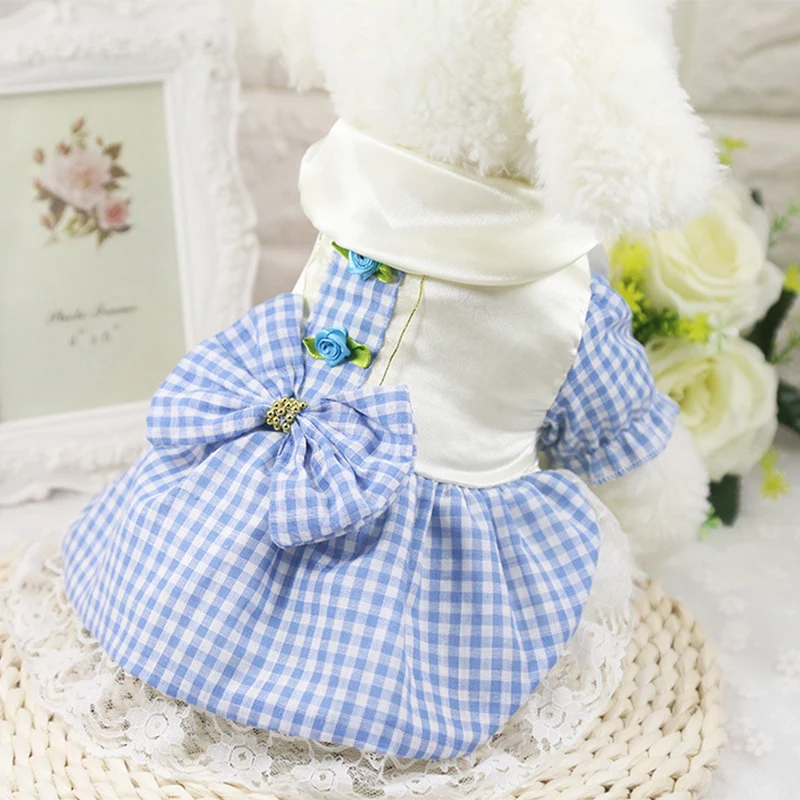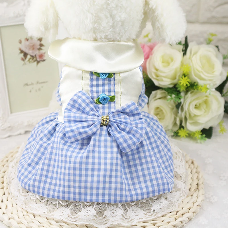 Новое поступление на весну и лето, одежда для маленьких собак и кошек, клетчатая юбка с бантом