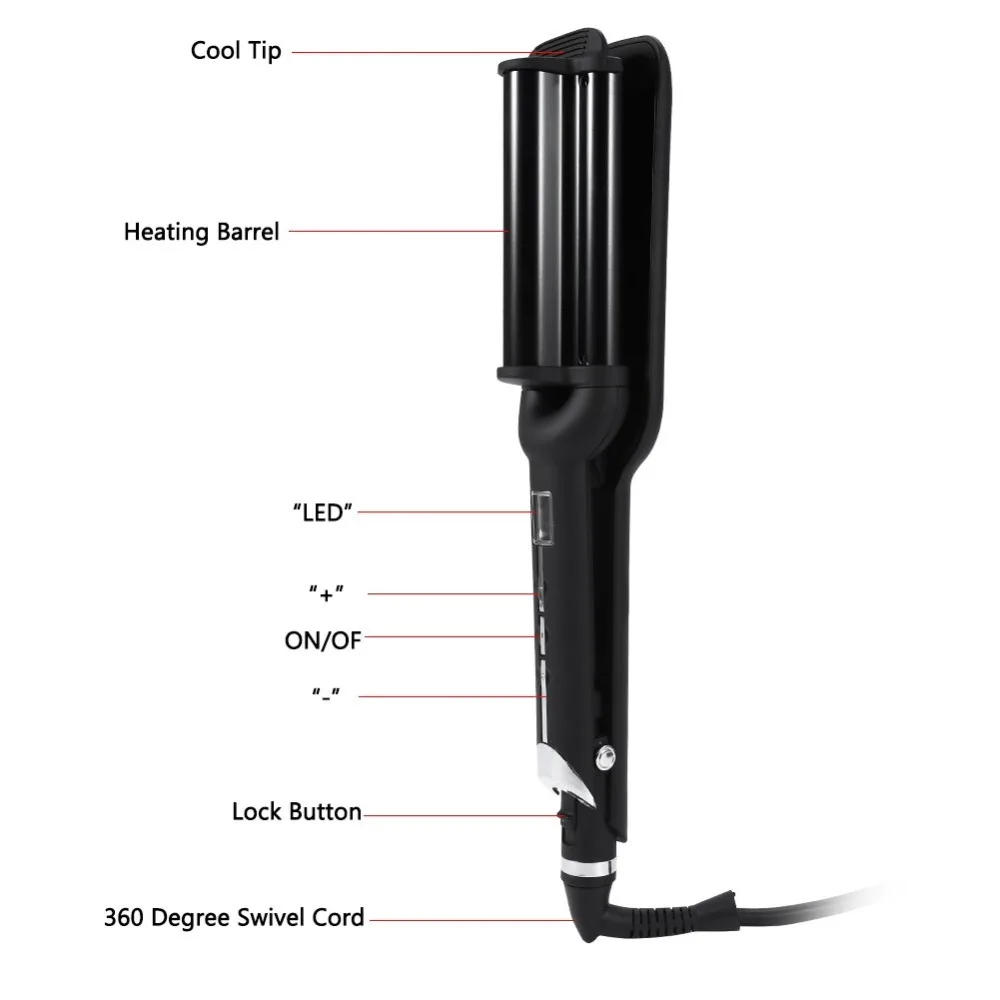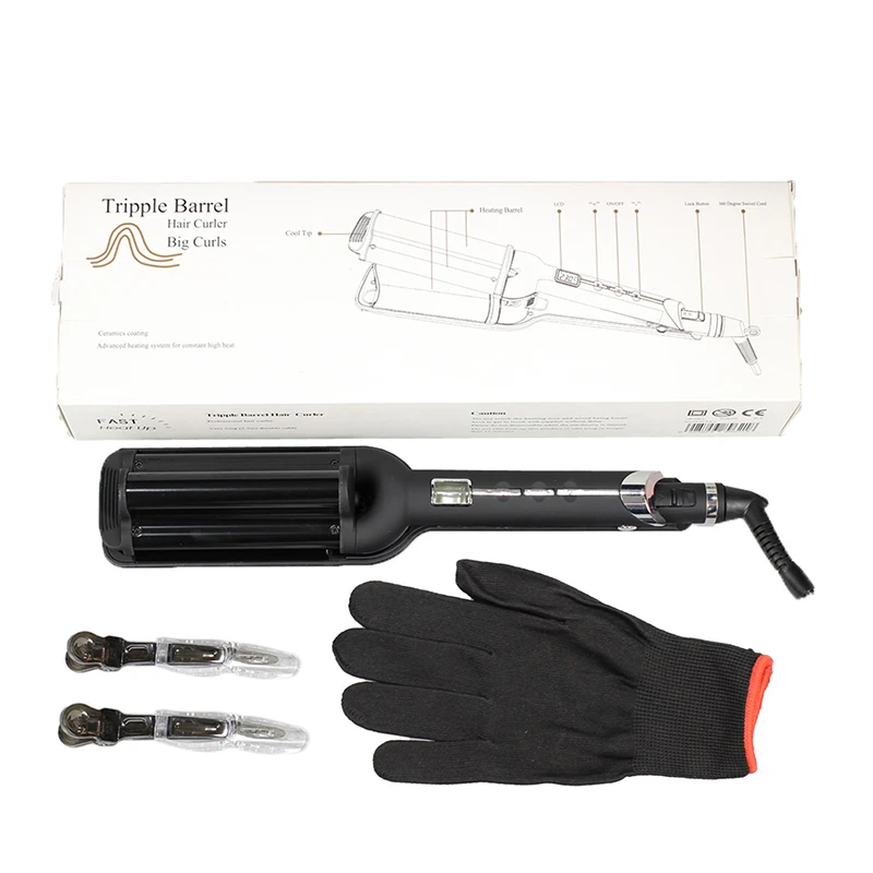 Щипцы для завивки волос с тремя трубками, щипцы для завивки волос 32 мм, большая волнистая палочка для волос, керамические щипцы для завивки волос с тремя стволами