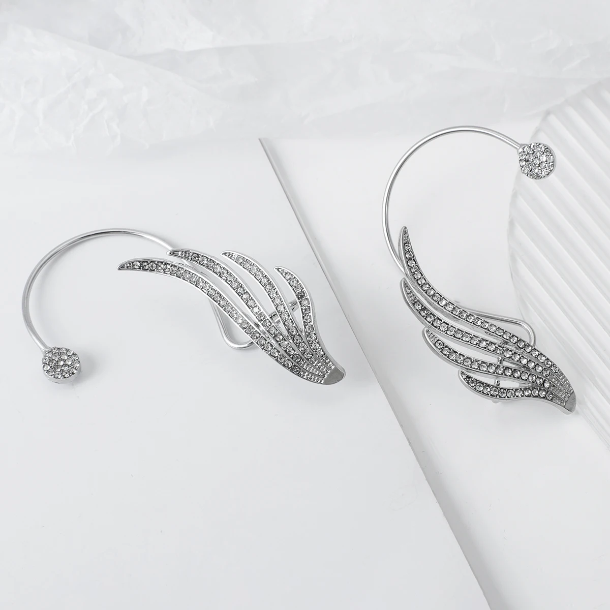Женские серьги-каффы с крыльями ангела AMORCOME, серьги-каффы без пирсинга, свадебные украшения, 2021