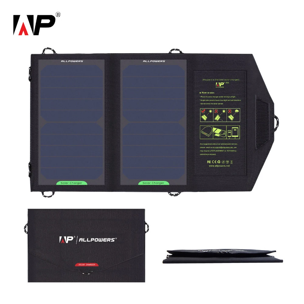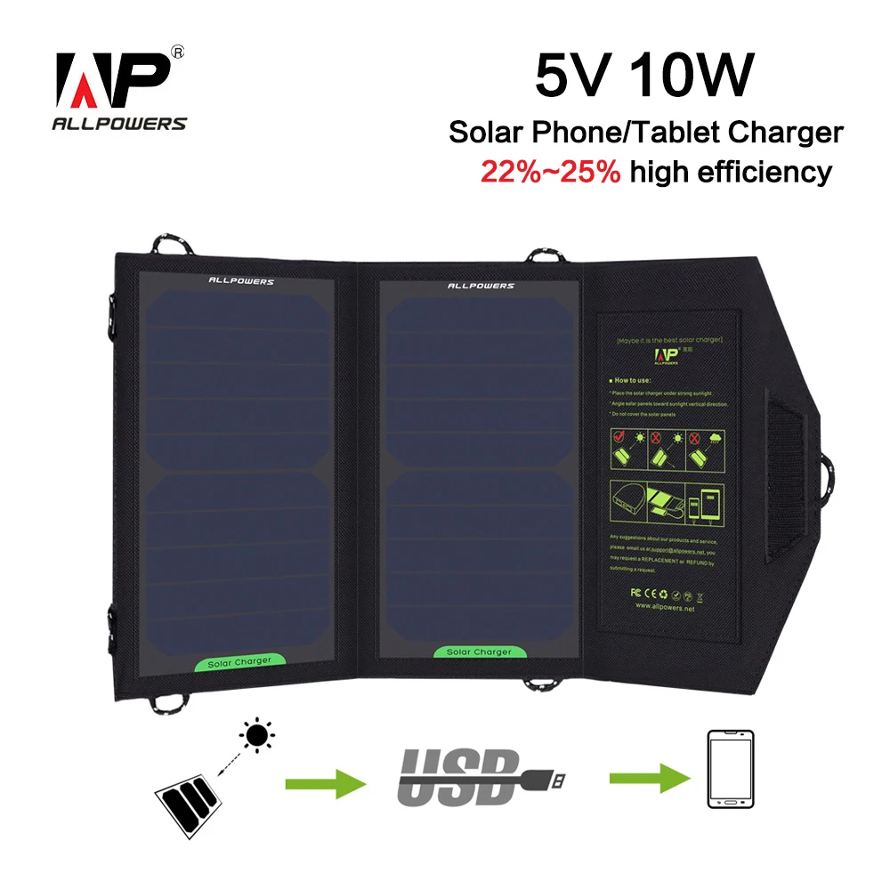 Зарядное устройство на солнечной батарее ALLPOWERS, USB 5 в 10 Вт, уличный Мобильный Внешний аккумулятор, складная солнечная батарея для Xiaomi Samsung iPhone