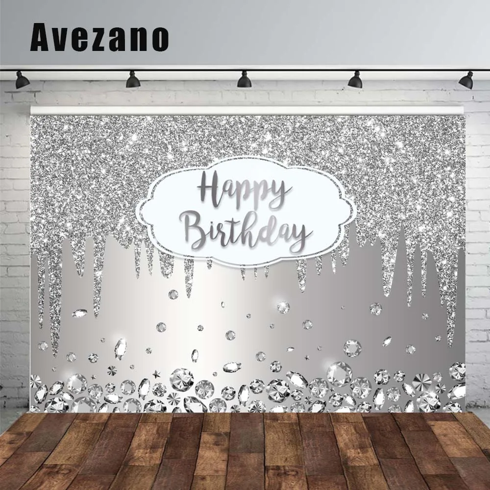 Фон для фотографий Avezano с изображением принцессы на день рождения, серебристый, со стразами, для фотостудии