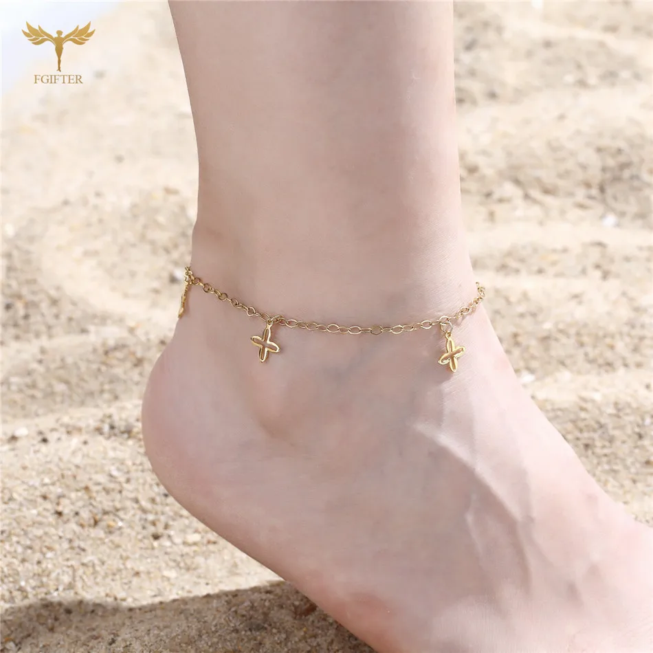 Крест Кулон ножной браслет золотой Цвет из нержавеющей стали для украшений ручной работы летние пляжные украшения элегантные модные женские туфли ботильоны ювелирные изделия