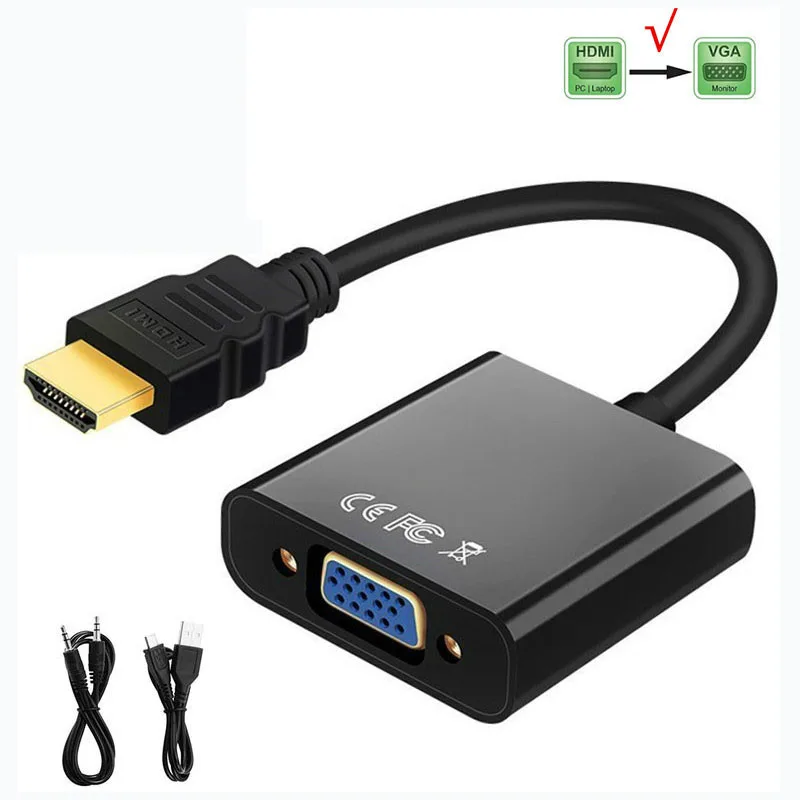 Кабель-адаптер HDMI-совместимый с VGA, преобразователь цифрового сигнала в аналоговый для ПК, ноутбуков, аудиопроводов, ТВ-приставок, PS4, проекторов HDTV