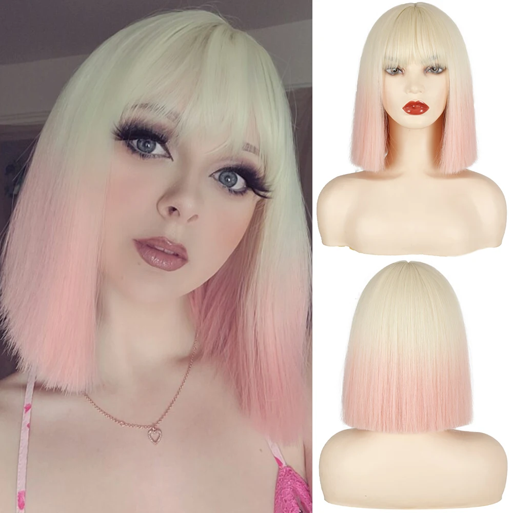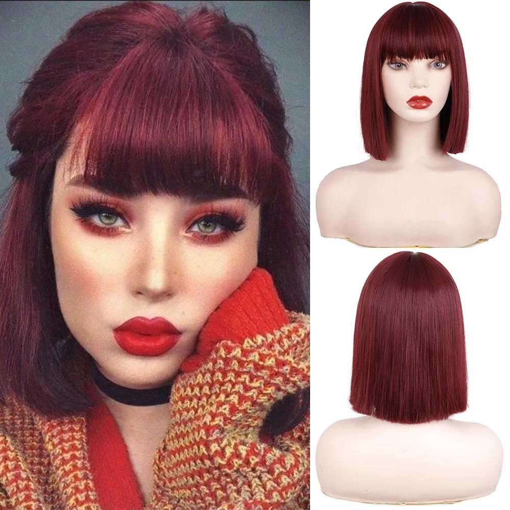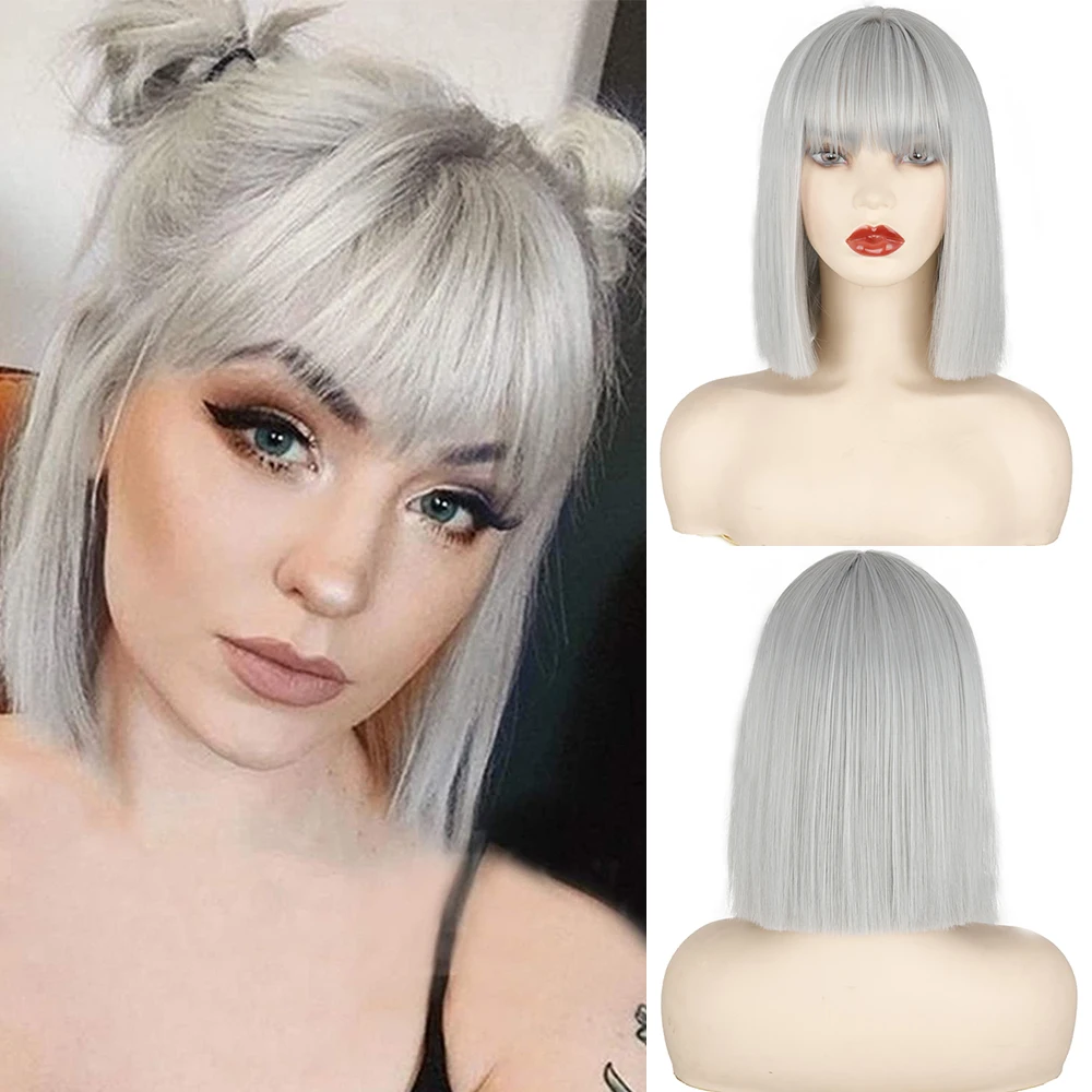 Синтетические прямые короткие парики AZQUEEN с челкой, парики из волос с челкой для женщин и девочек, парики в стиле "Лолита"