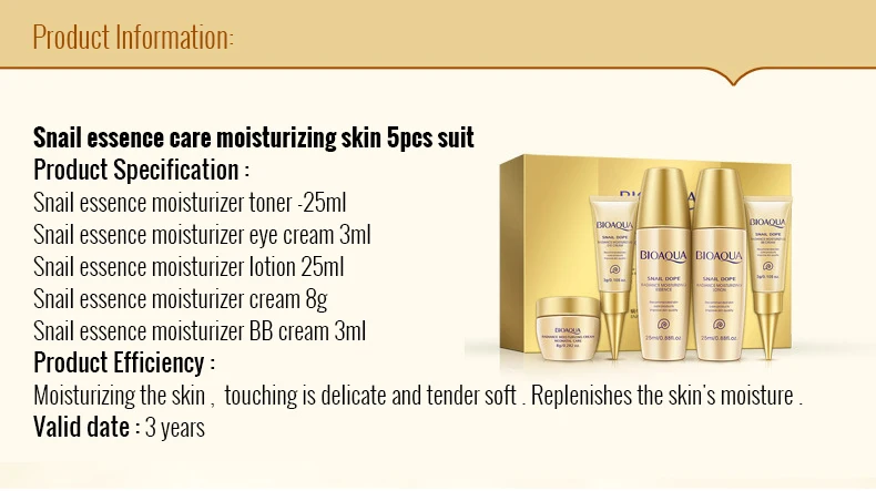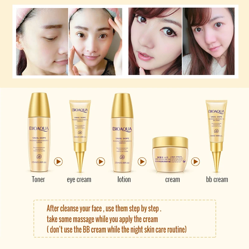 BIOAQUA лицо улитки дневной увлажняющий отбеливающий крем для лица с гиалуроновой кислотой + тоник + BB-крем + крем для глаз + сывороточный лосьон