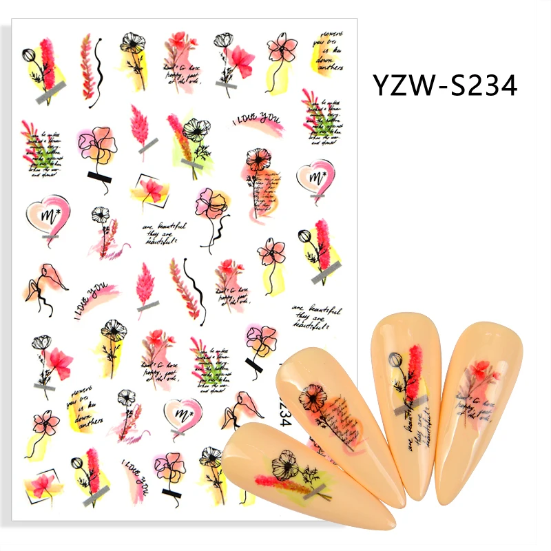 3D наклейки для ногтей, летние самоклеющиеся наклейки, яркие цветы,...