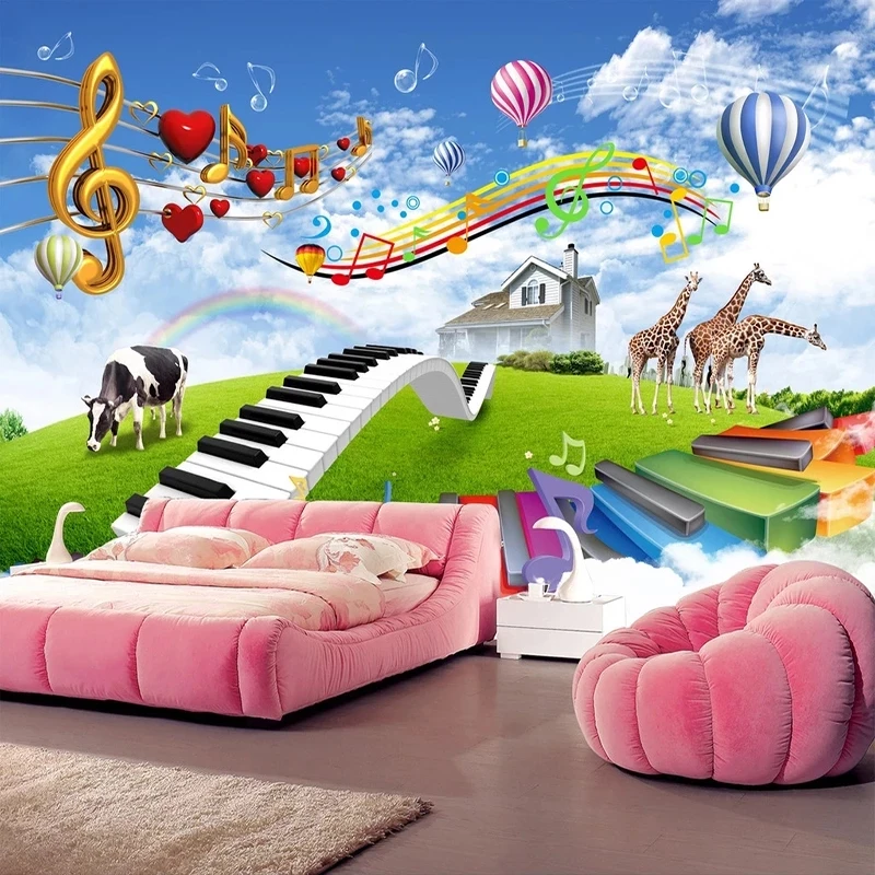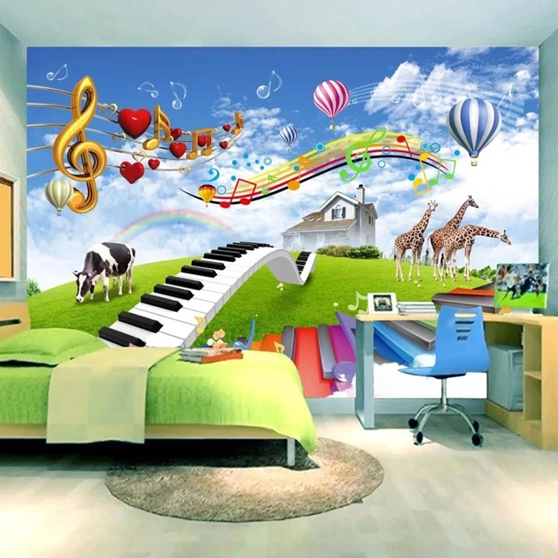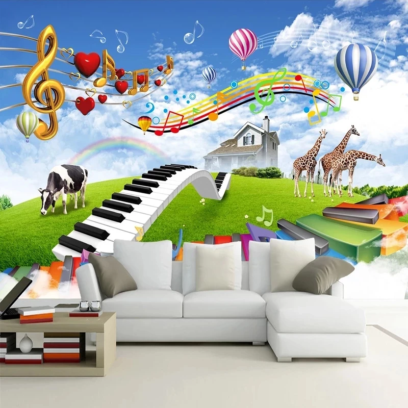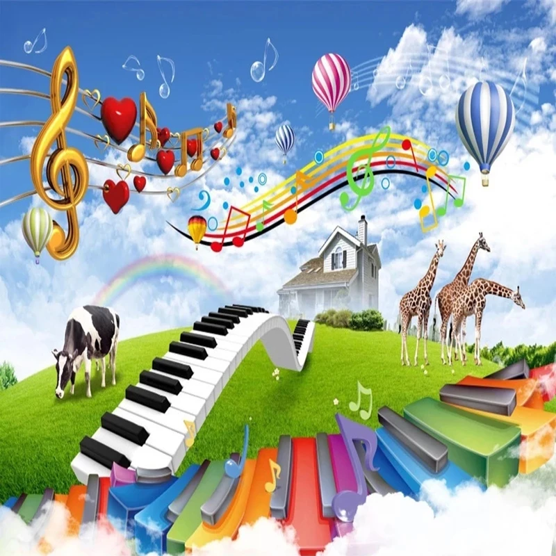 Настенные обои на заказ, водонепроницаемая фотография с изображением синего неба, белого облака, музыки, жирафа, коровы, пастбища, природного ландшафта, спальни, детской комнаты
