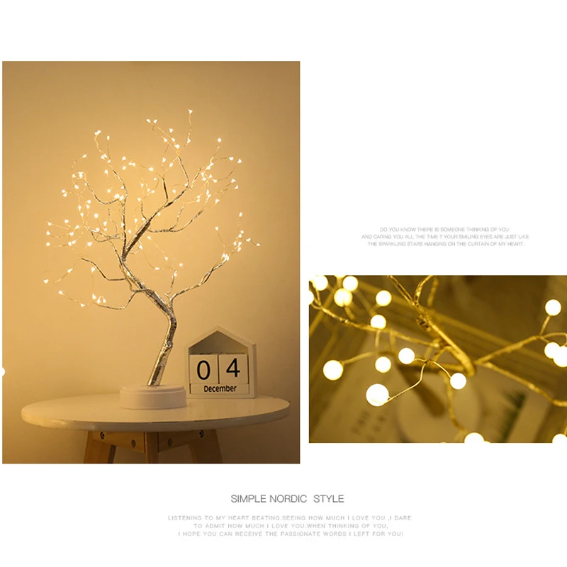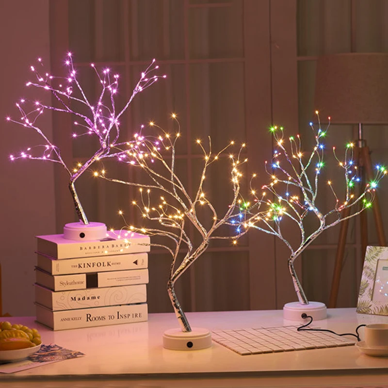 Светодиодный ночсветильник в виде дерева, медный провод, гирлянда, лампа, с питанием от аккумулятора, для дома, декор детской спальни, сказочный свет, празднисветильник
