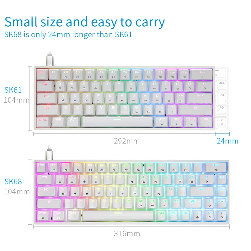 Клавиатура игровая Механическая SKYLOONG GK68, 68 клавиш, со съемным кабелем