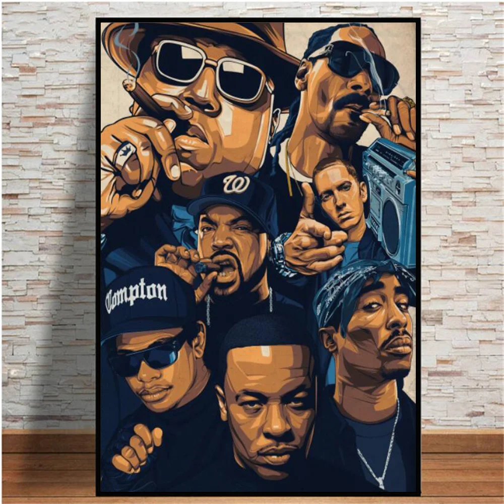 Художественные плакаты West Coast в стиле хип-хоп, рисунки на холсте Biggie smols 2PAC Rap Singer, Настенный декор, картины для гостиной