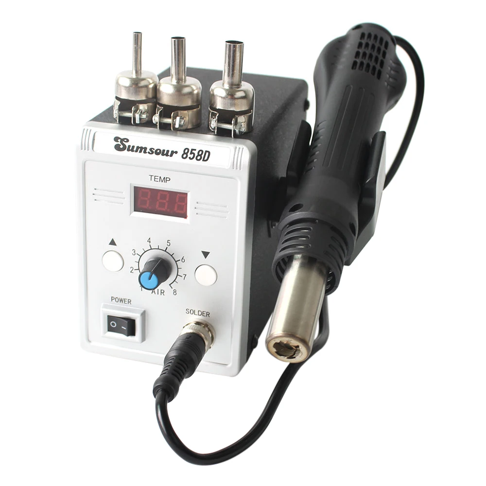 1 × 858D паяльная станция1 × ручка3 × воздушное сопло1 × Кабель питания (штепсельная вилка США/штепсельная вилка европейского стандарта)
