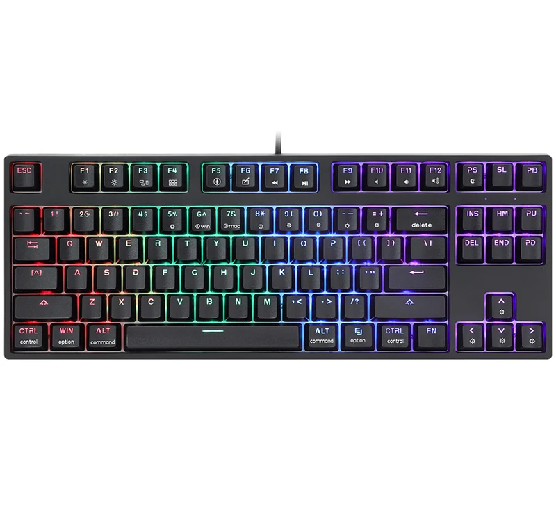 100% новый товар высокого качества. 87 механических клавиш со стандартным выравниванием покера. Более 100 миллионов нажатий клавиш, в 2 раза дольше, чем Традиционная механическая ось. Нижняя часть корпуса из АБС-пластика, двухцветная крышка для ключей из АБС-пластика/ПБТ, Классическая и модная. Водонепроницаемый/пыленепроницаемый/антикоррозийный. 3-слойный программируемый режим загрузки (версия RGB). Замечательная сияющая подсветка, 16 миллионов цветовых RGB световых эффектов для Отвечает требованиям геймеров. Настройте подсветку клавиатуры через программное приложение. Эргономичный дизайн игровой клавиатуры обеспечивает максимально комфортный игровой процесс.