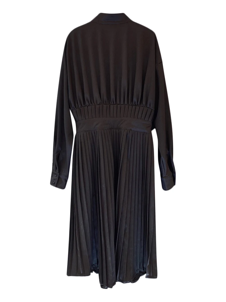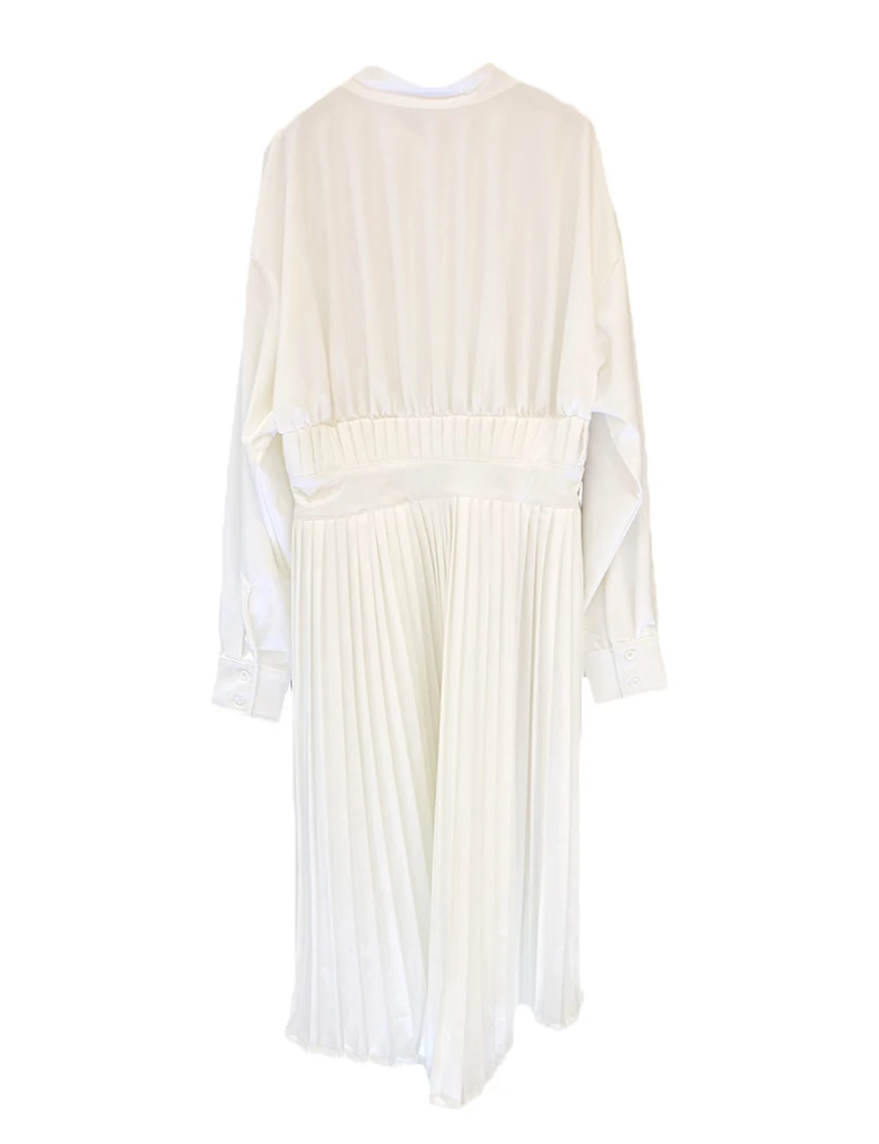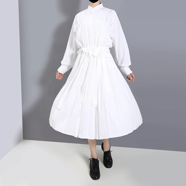 Новинка 2021, женское однотонное белое черное повседневное Плиссированное Платье-рубашка с длинным рукавом и бантами, прямая женская Стильная Роба, Femme 8286