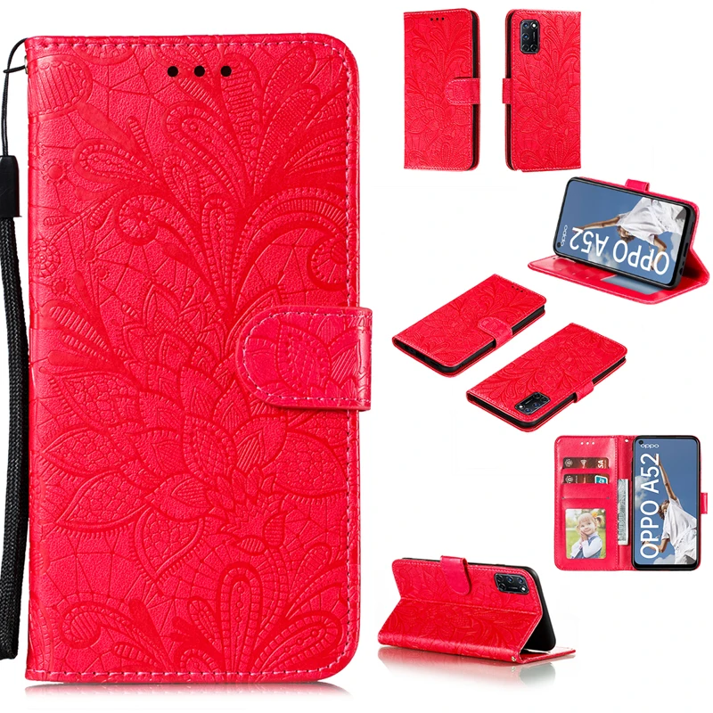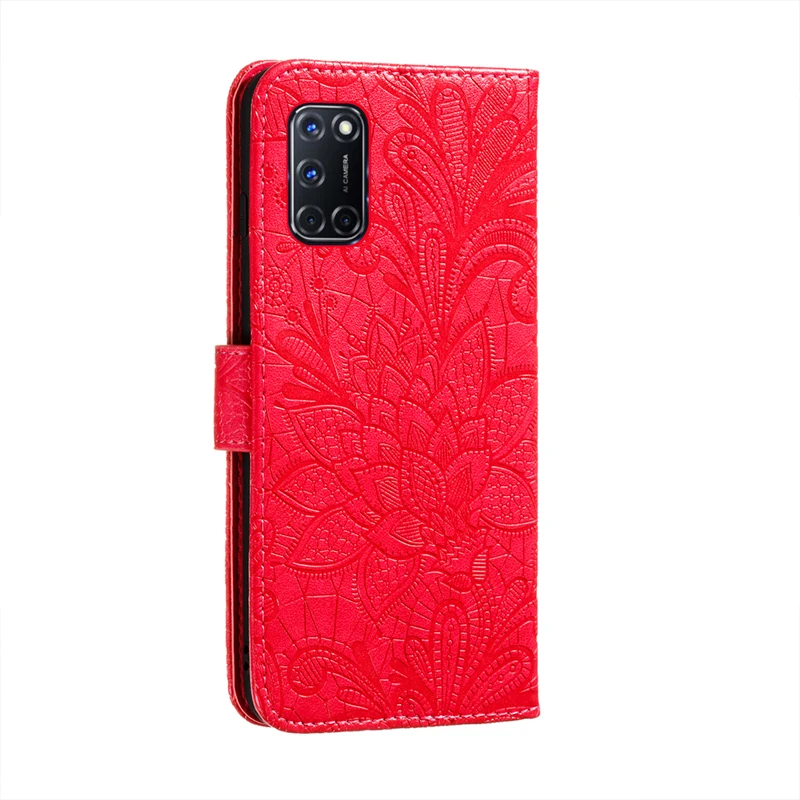Кожаный чехол-кошелек с цветком для OPPO A9 2020 A5 A31 A52 A72 A92...