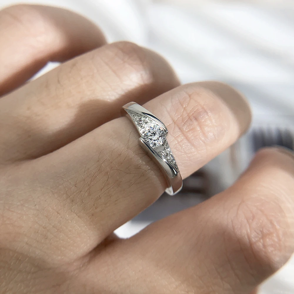 Классическое серебряное модное обручальное кольцо с кубическим цирк...