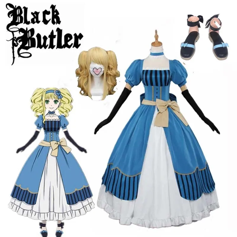 Ботинки в стиле аниме Темный дворецкий Kuroshitsuji Элизабет мидфорд Косплэй костюм Лиззи вечернее платье в стиле "Лолита" парик обувь полный набор для вечеринки в честь Хэллоуина
