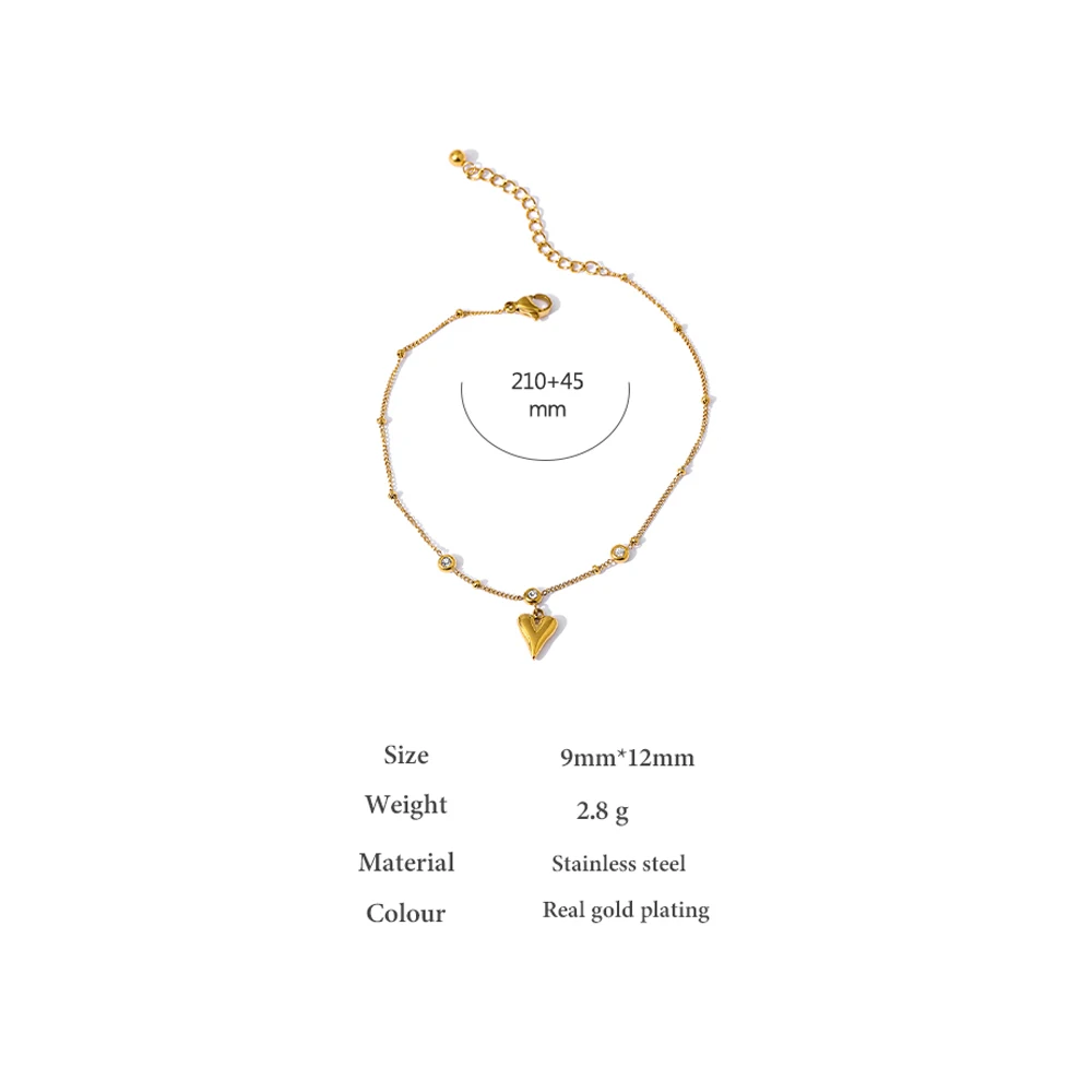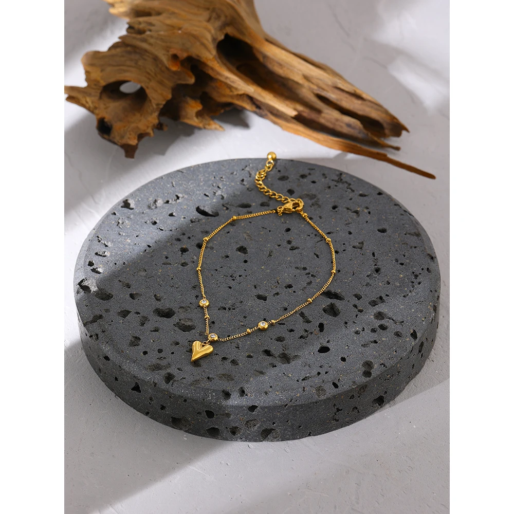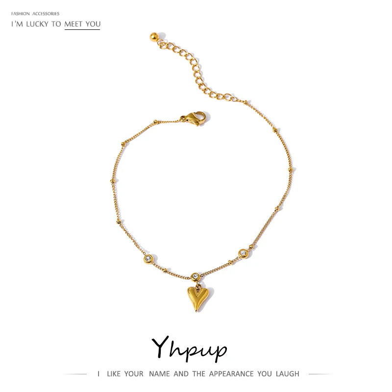 Женский ножной браслет Yhpup, Золотая из нержавеющей стали, ножной подвеска в форме сердца с фианитами, модная летняя металлическая цепочка