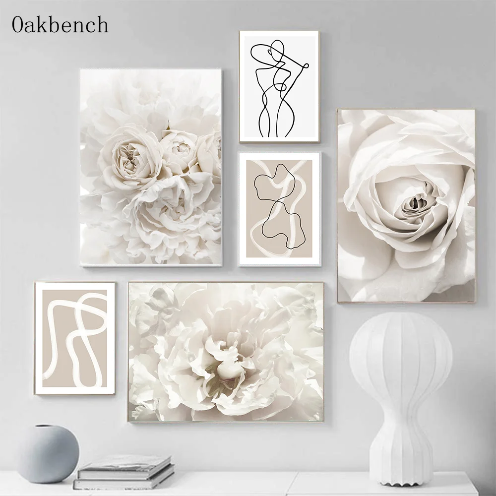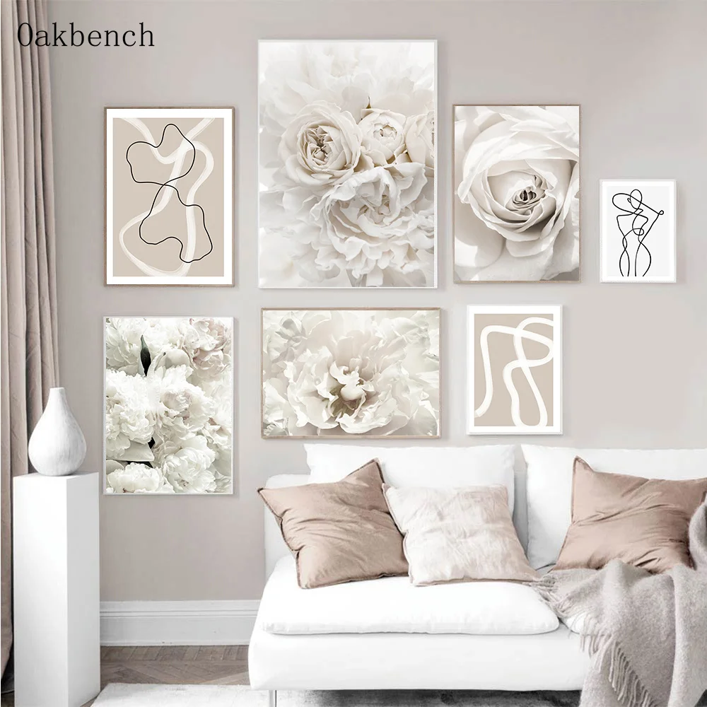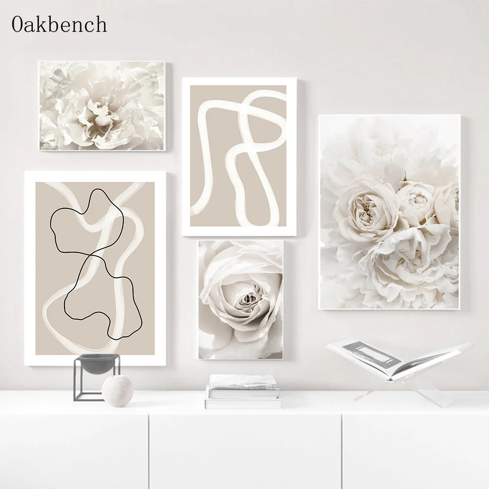 Абстрактные линии Печать на холсте Пейзаж Плакат цветок настенная живопись бежевые плакаты Скандинавская картина для украшения гостиной