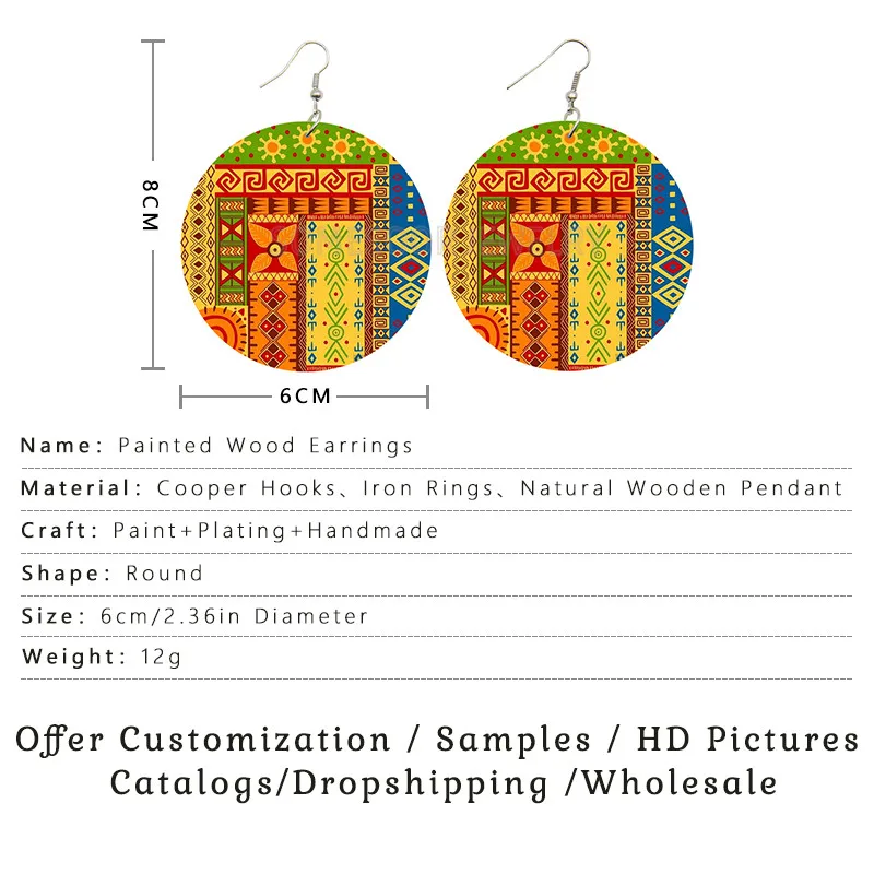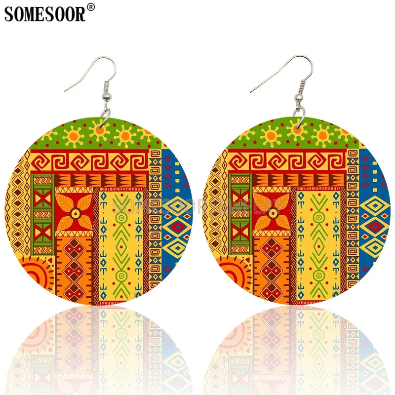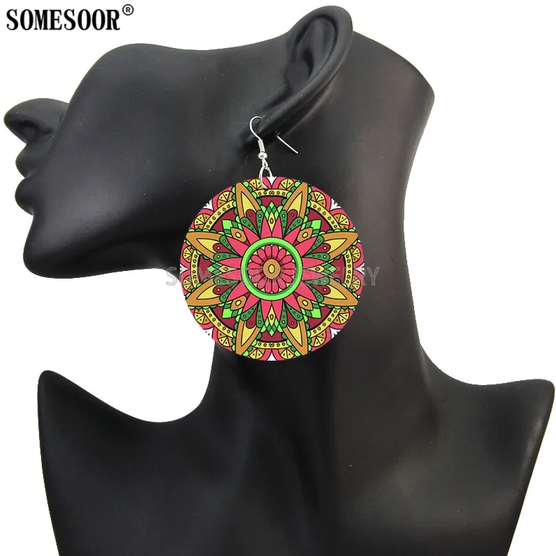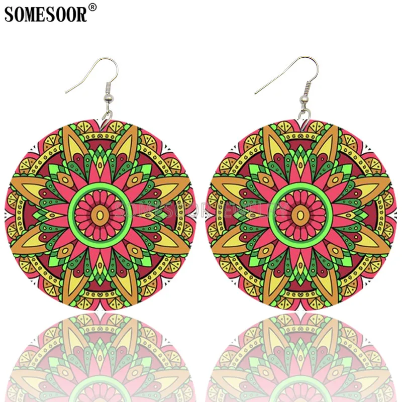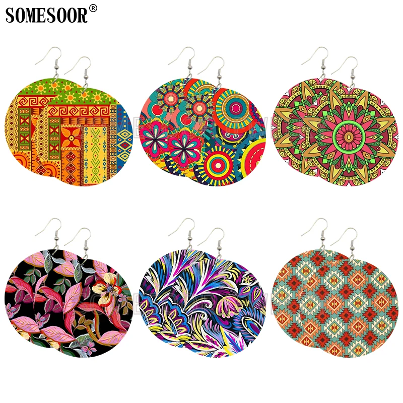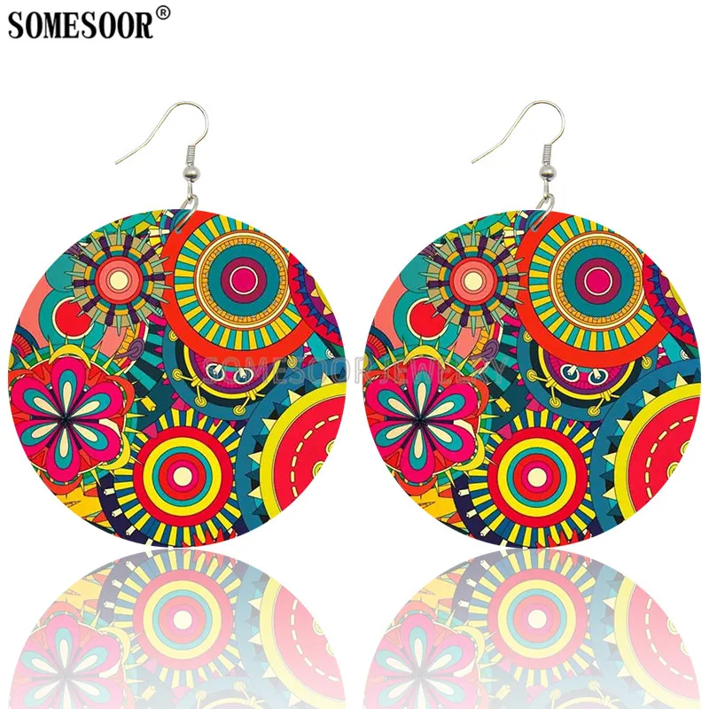 SOMESOOR смешанные 6 Ручная роспись цветок работает художниками натуральное дерево двусторонняя печать висячие серьги для женщин Подарки