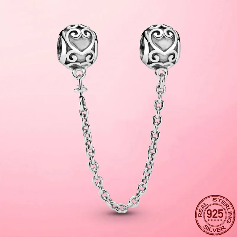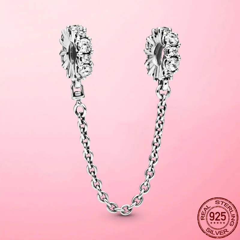 Серебряная безопасная цепочка, искусственное серебро, ромашки, сердце, безопасная цепочка, застежка, шарм, подходит для оригинального брендового браслета сделай сам, ювелирные изделия
