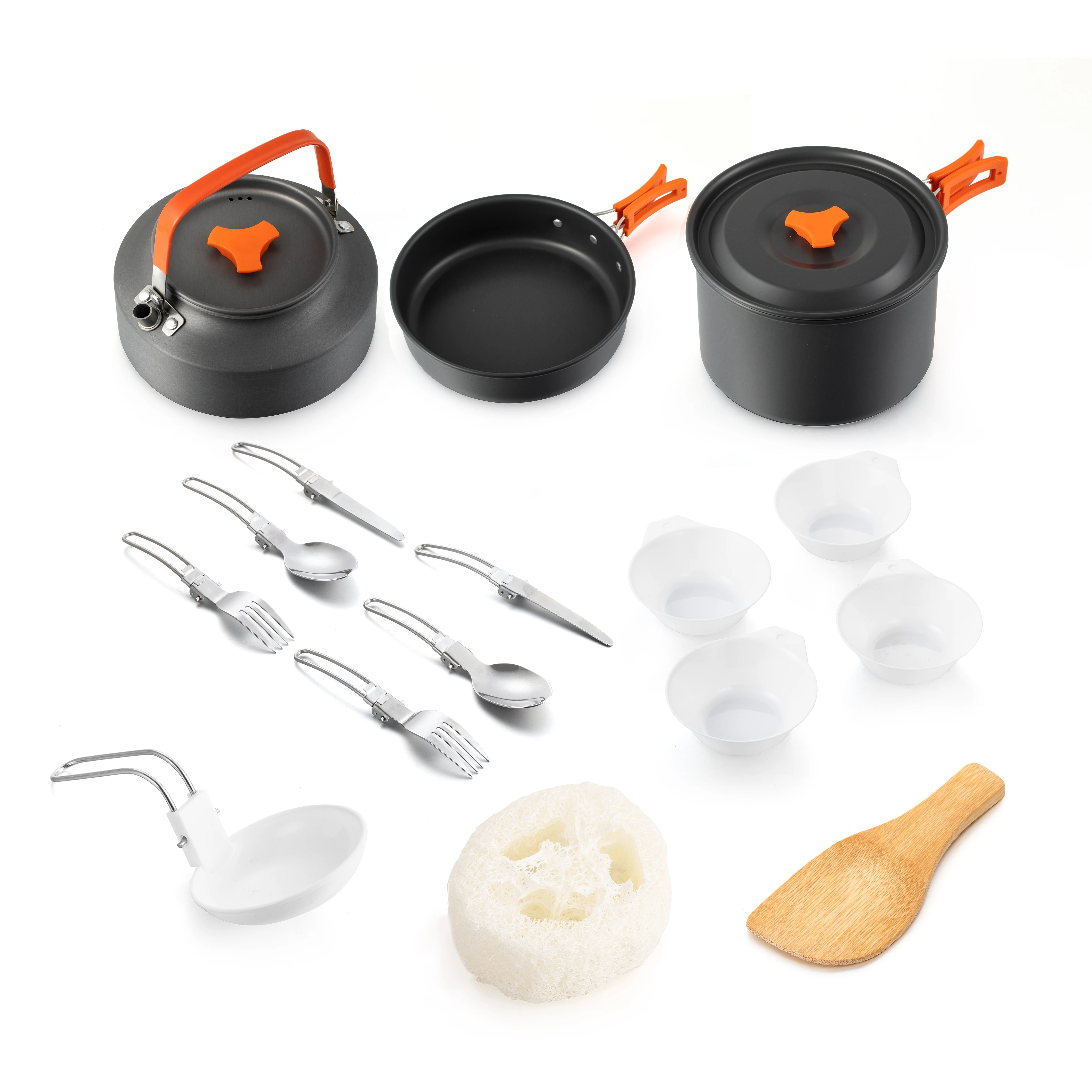 Характеристика:[Подходит для 4-5 человек]: в общей сложности 16 в 1 походная посуда, включая 1 кастрюлю, 1 кастрюлю, 1 чайник, 4 миски, 1 рисовая ложка, 1 суповая ложка, 2 ложки, 2 вилки, 2 ножа и 1 чистящий шарик.[Легкий и портативный]: ручка каждого горшка или горшка складывается для удобного хранения. Все может быть вложено компактно для легкой упаковки и транспортировки. И все кухонные принадлежности можно хранить вместе в сумке для хранения для удобной переноски. Он очень подходит для кемпинга.[Безопасный и здоровый способ приготовления]: на кастрюле или кастрюле нет покрытия или отравления. Все миски и тарелки не содержат BPA. С силиконовой крышкой трубки ручка каждого горшка или горшка может предотвратить ожоги рук. Набор для кемпинга обеспечит Вас и Вашу семью безопасной и здоровой готовкой.[Идеально подходит для улицы]: лучшее оборудование, подходит для кемпинга на открытом воздухе, альпинизма, пеших прогулок, подготовки к аварийной ситуации или как часть спасательного оборудования.