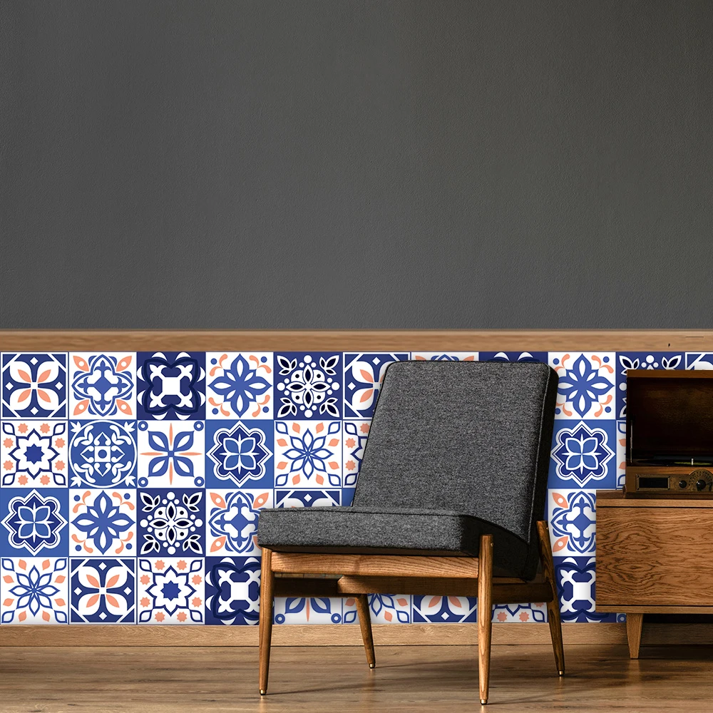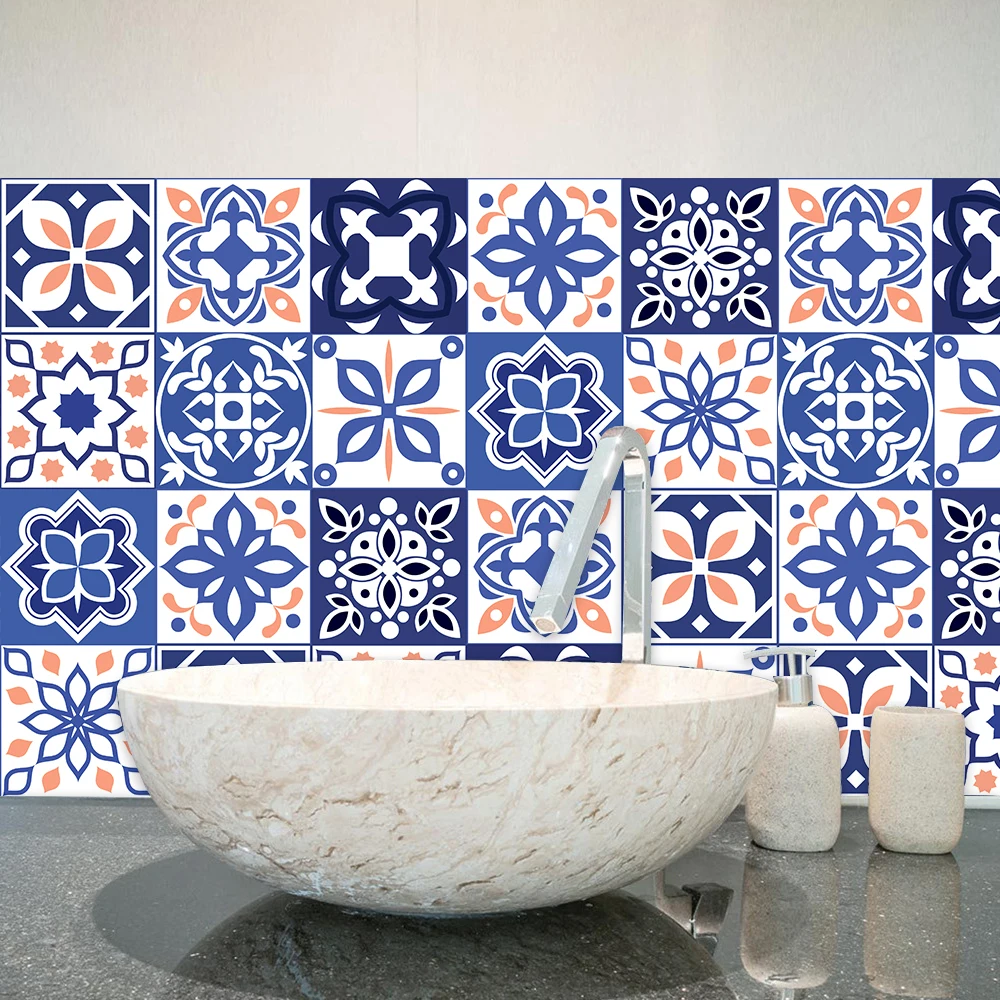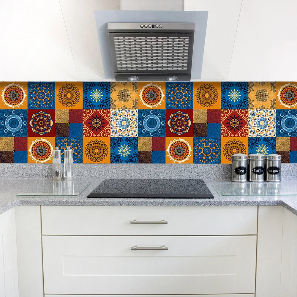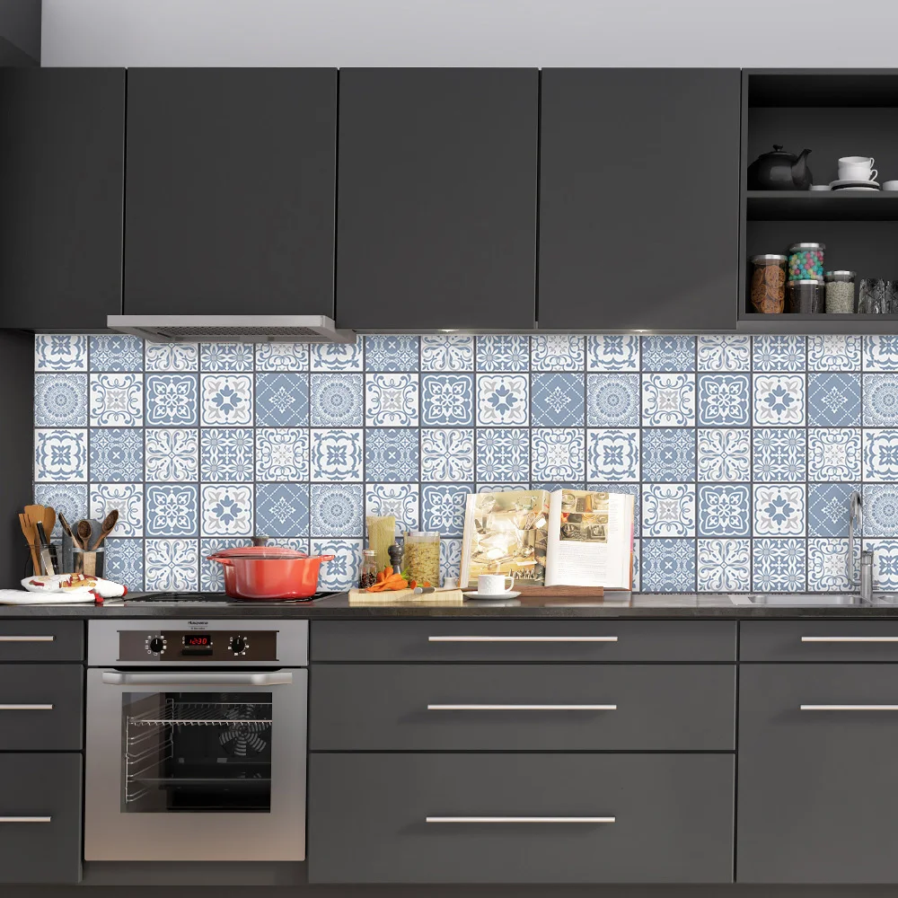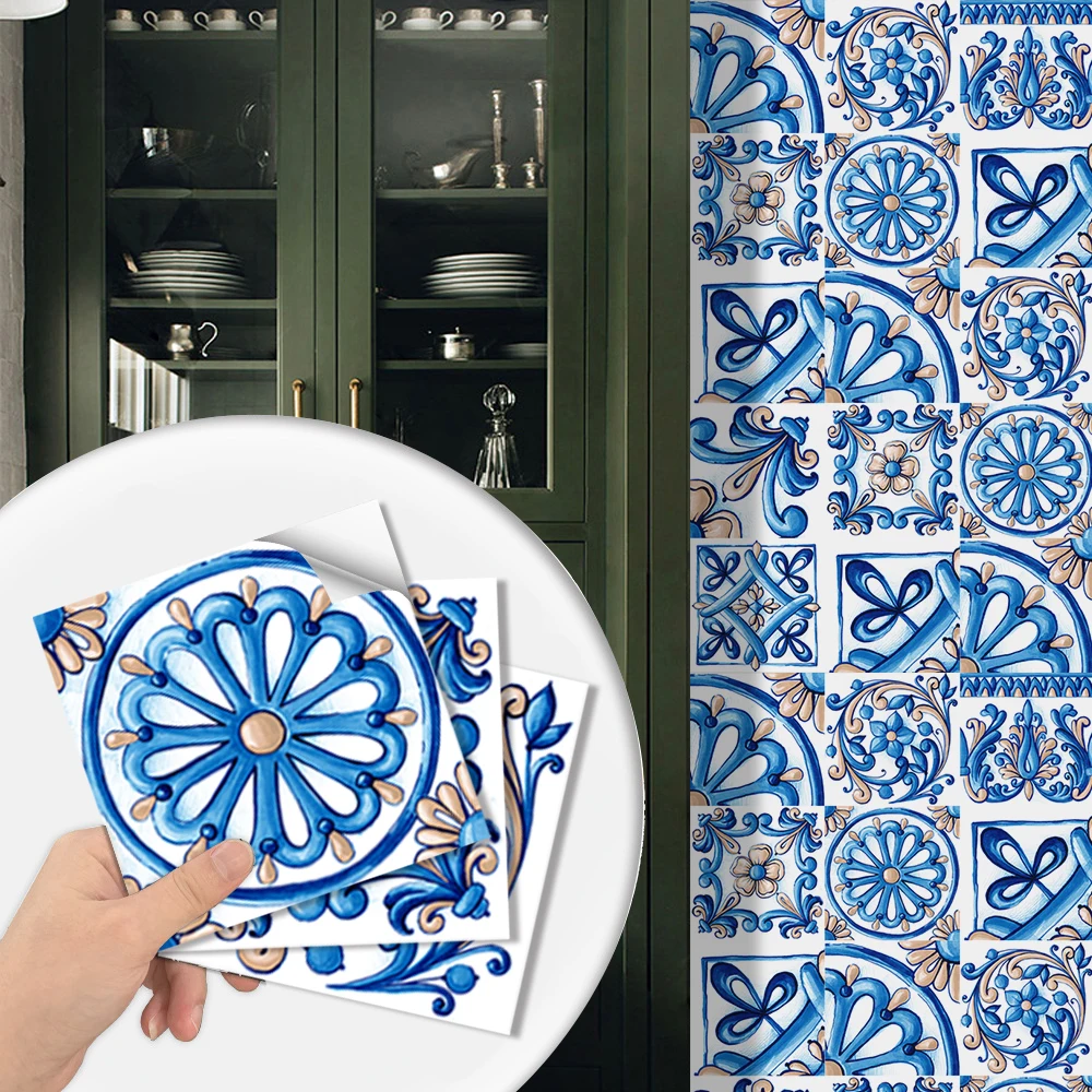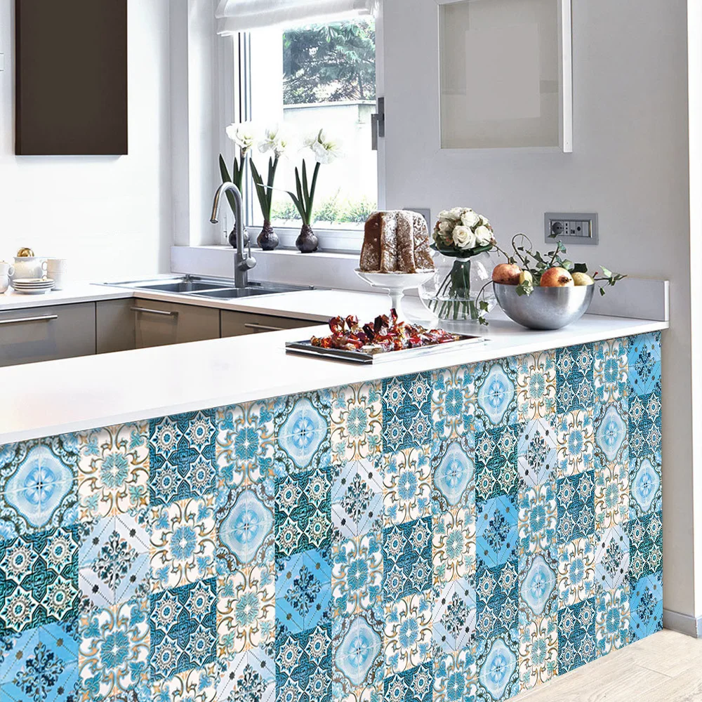 Наклейка на стену с матовой поверхностью мечта голубая мандала, нескользящая плитка, декоративная пленка для плиткиземли на кухне, ванной комнаты, художественная роспись
