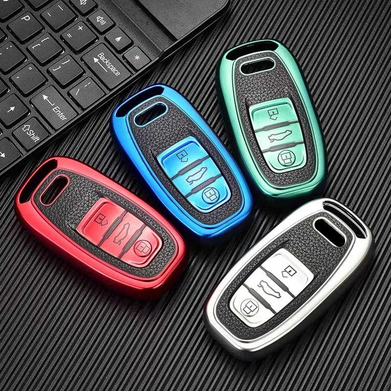 Чехол для автомобильного смарт-ключа из ТПУ и кожи, чехол для Audi A1 A3 A4 A5 A6 A7 A8 Quattro Q3 Q5 Q7 2009-2015, аксессуары